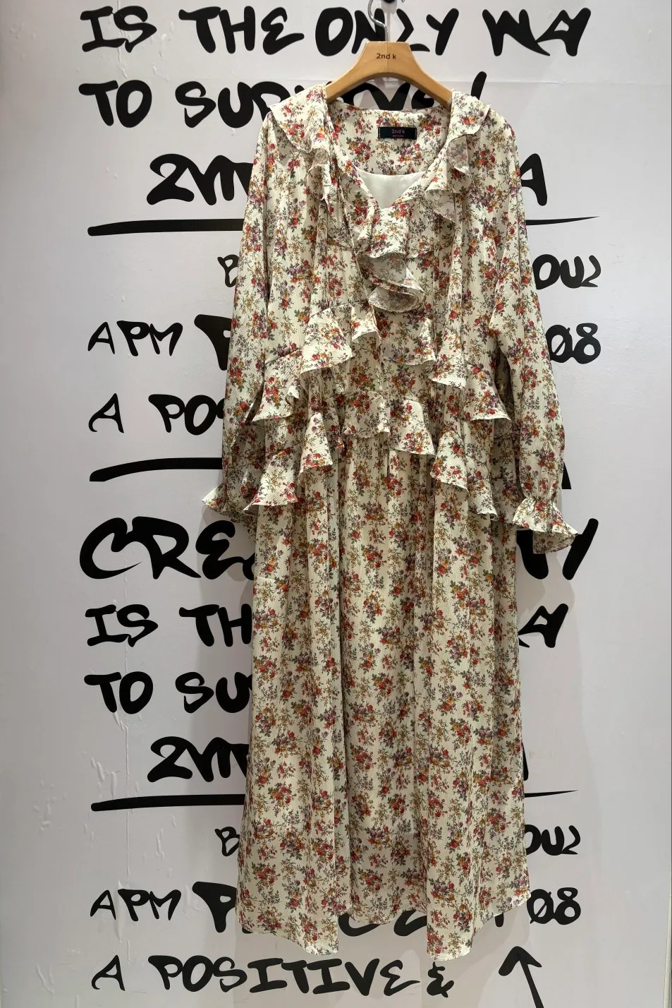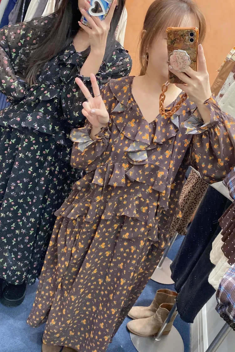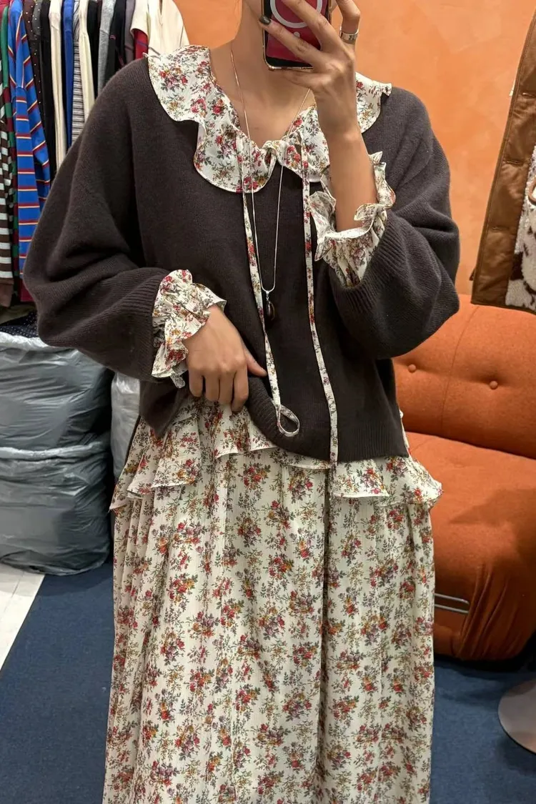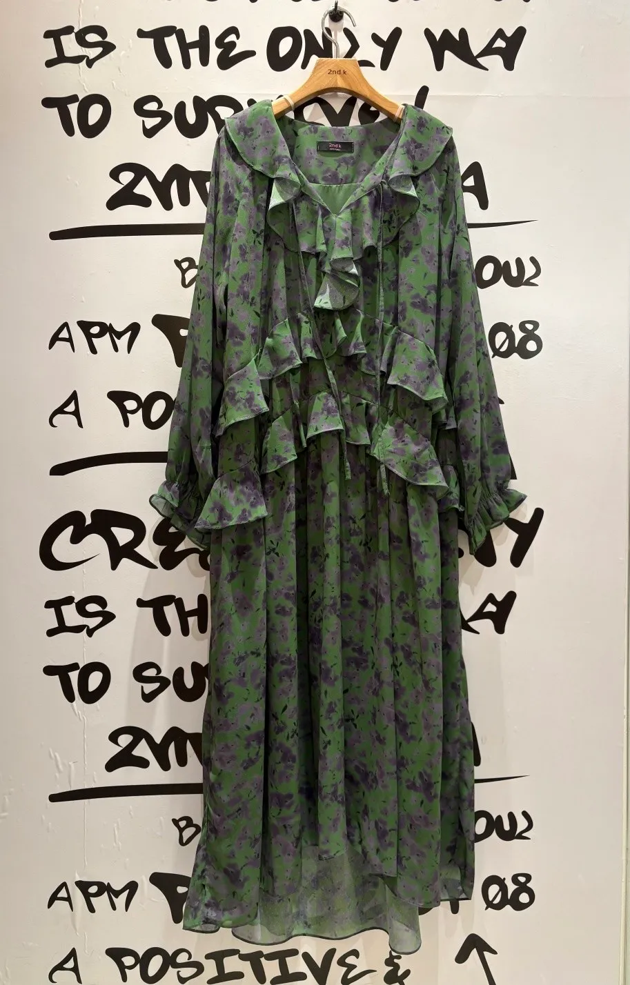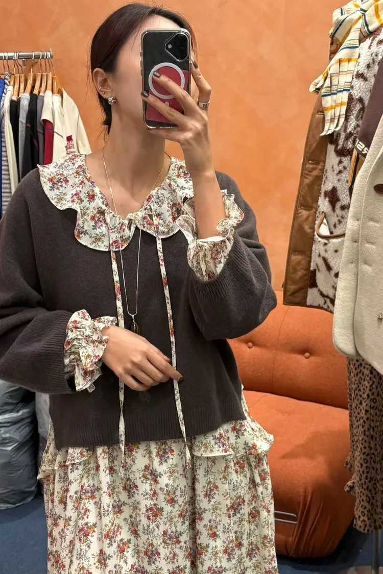 V領拼上波浪荷葉,還有綁帶設計、綁起來成圓領