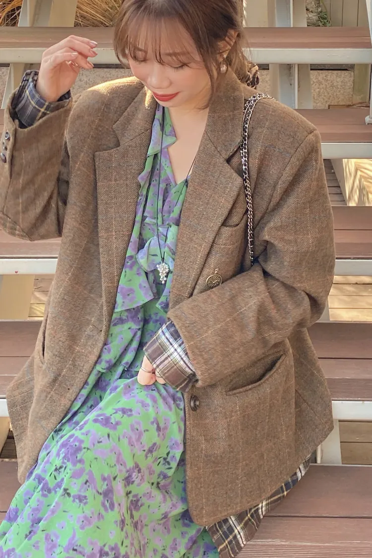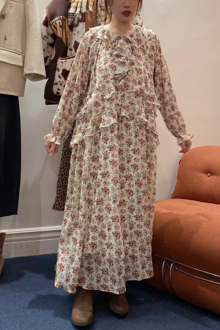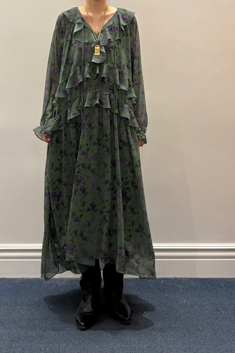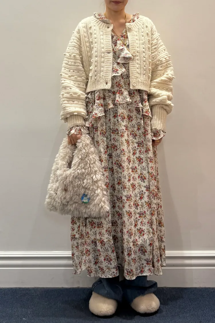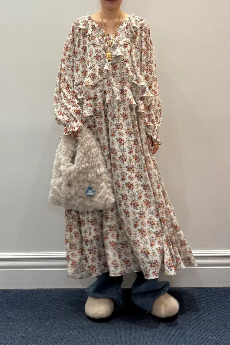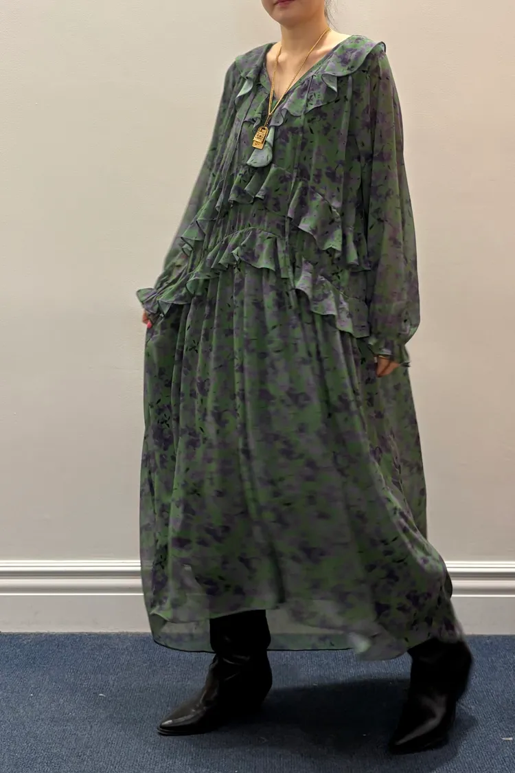 V領拼上波浪荷葉,還有綁帶設計、綁起來成圓領