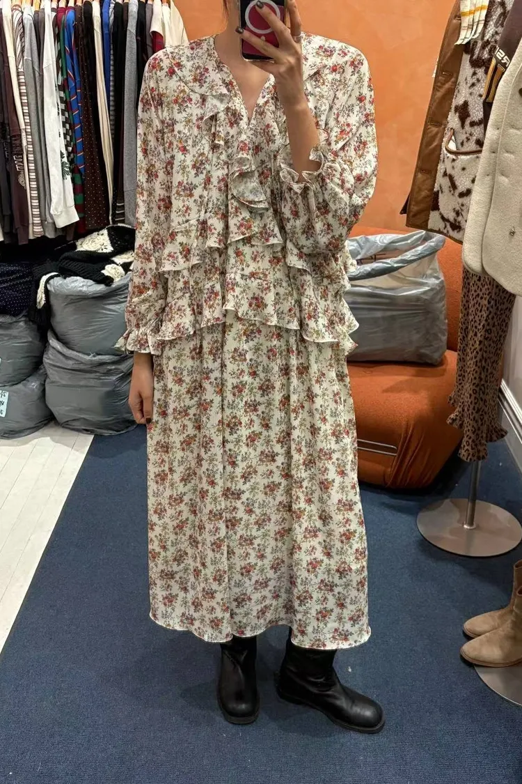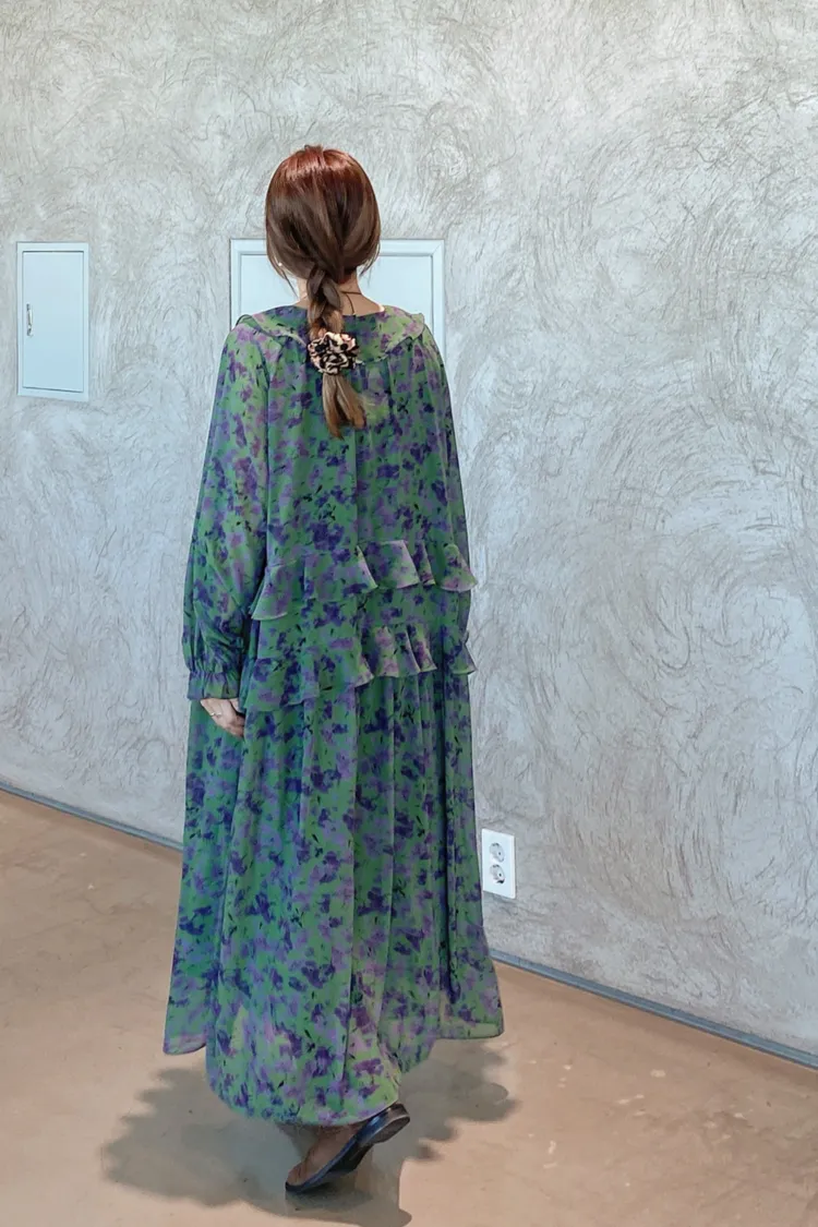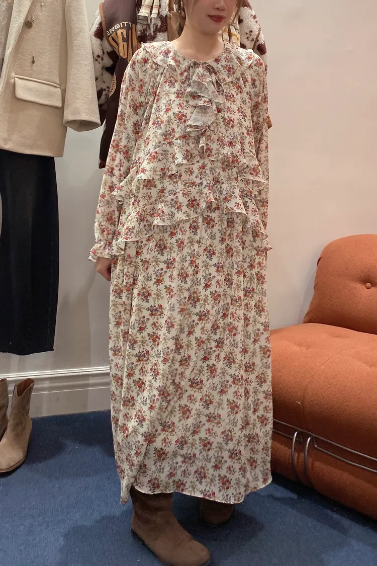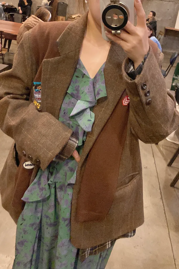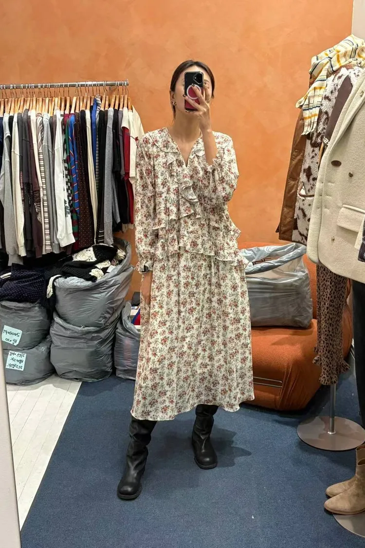 V領拼上波浪荷葉,還有綁帶設計、綁起來成圓領