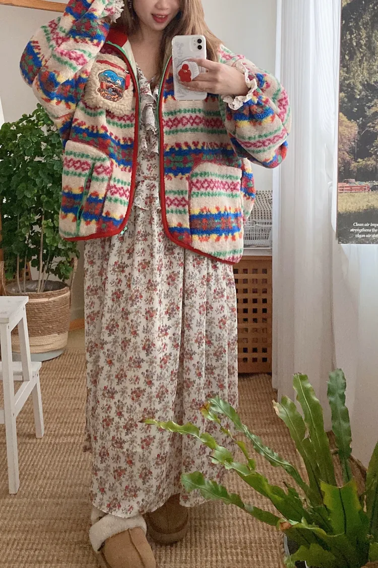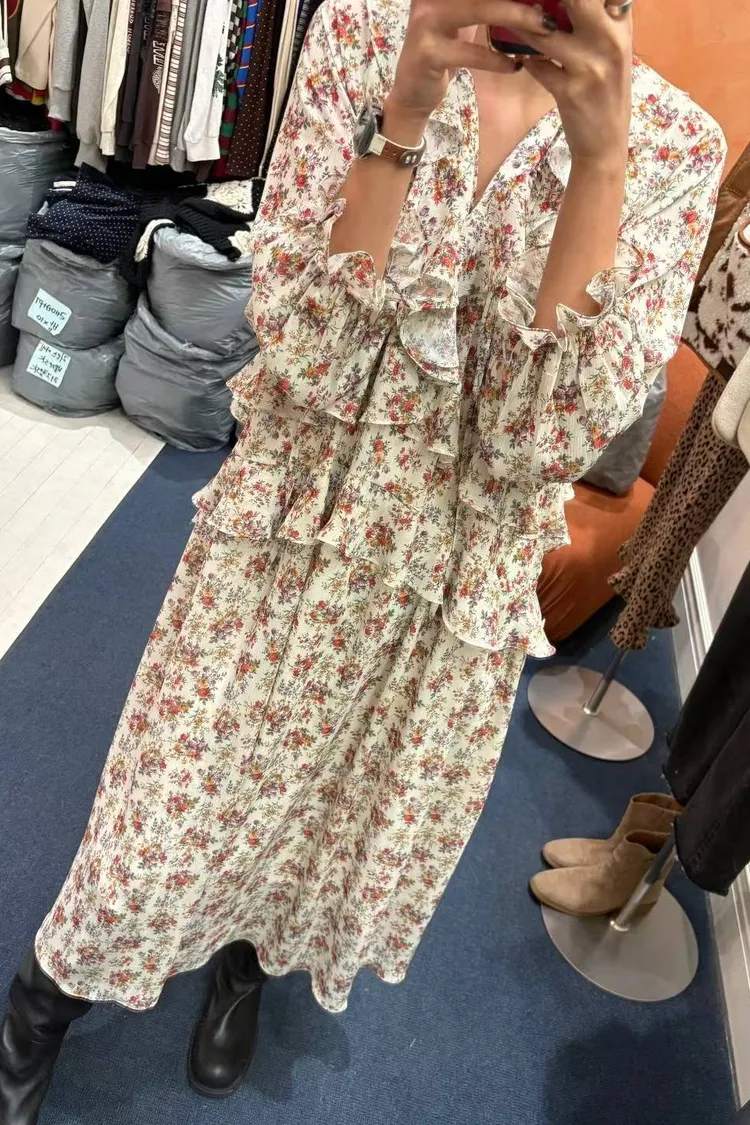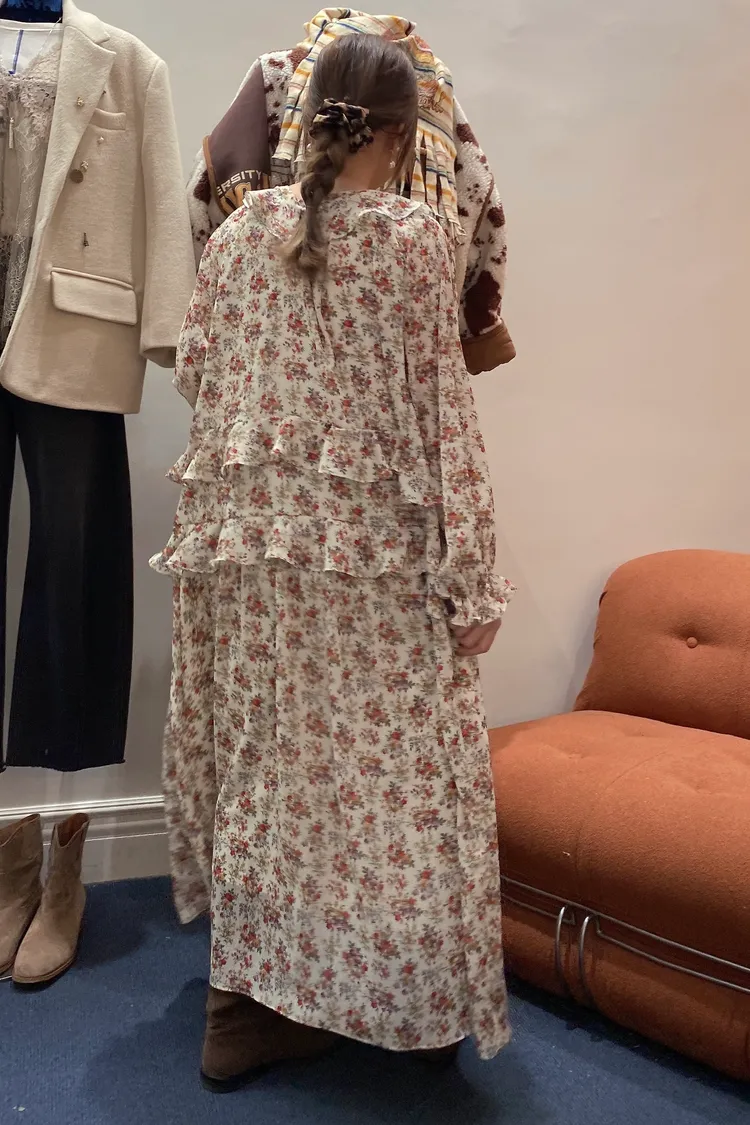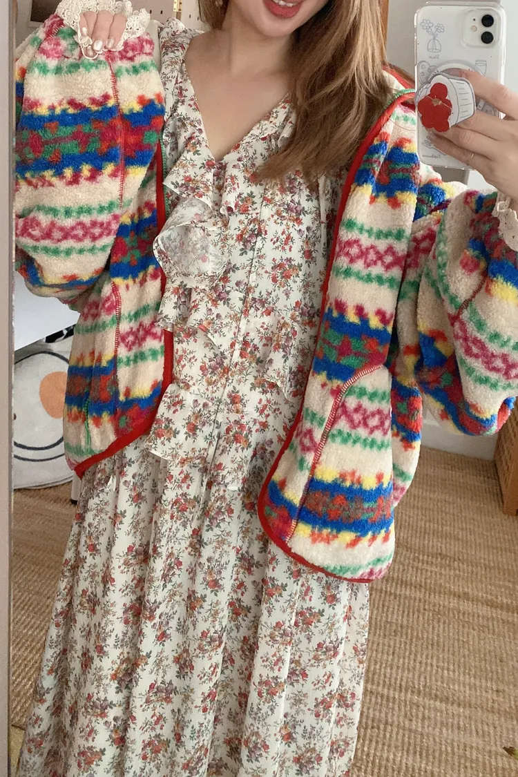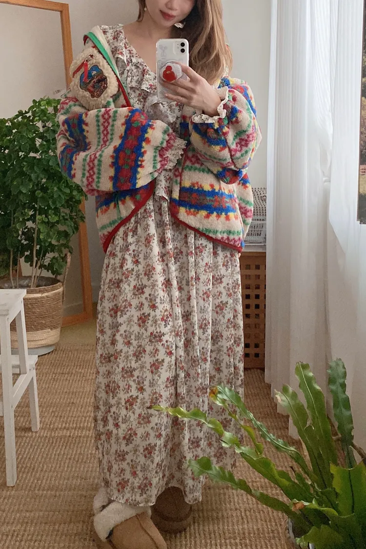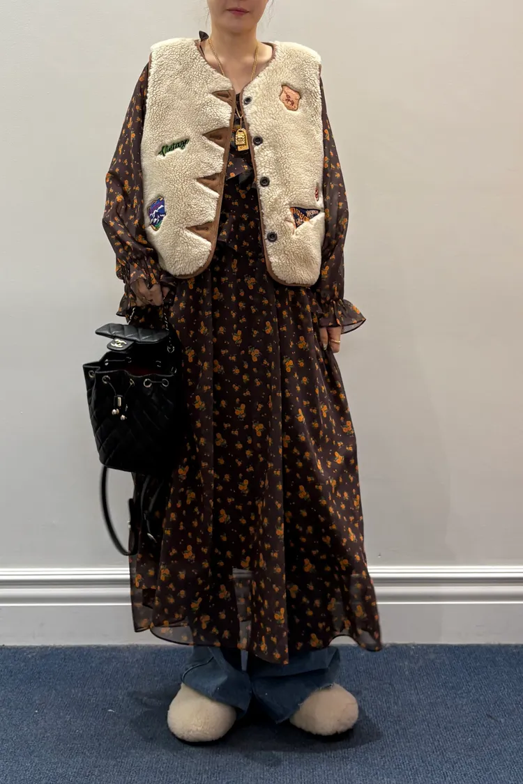 V領拼上波浪荷葉,還有綁帶設計、綁起來成圓領