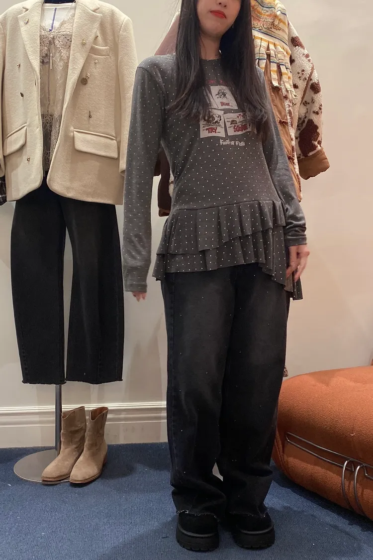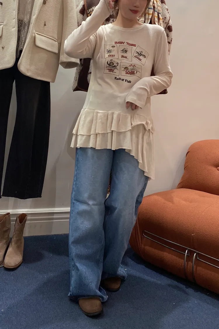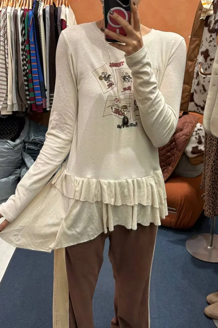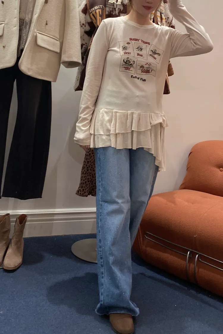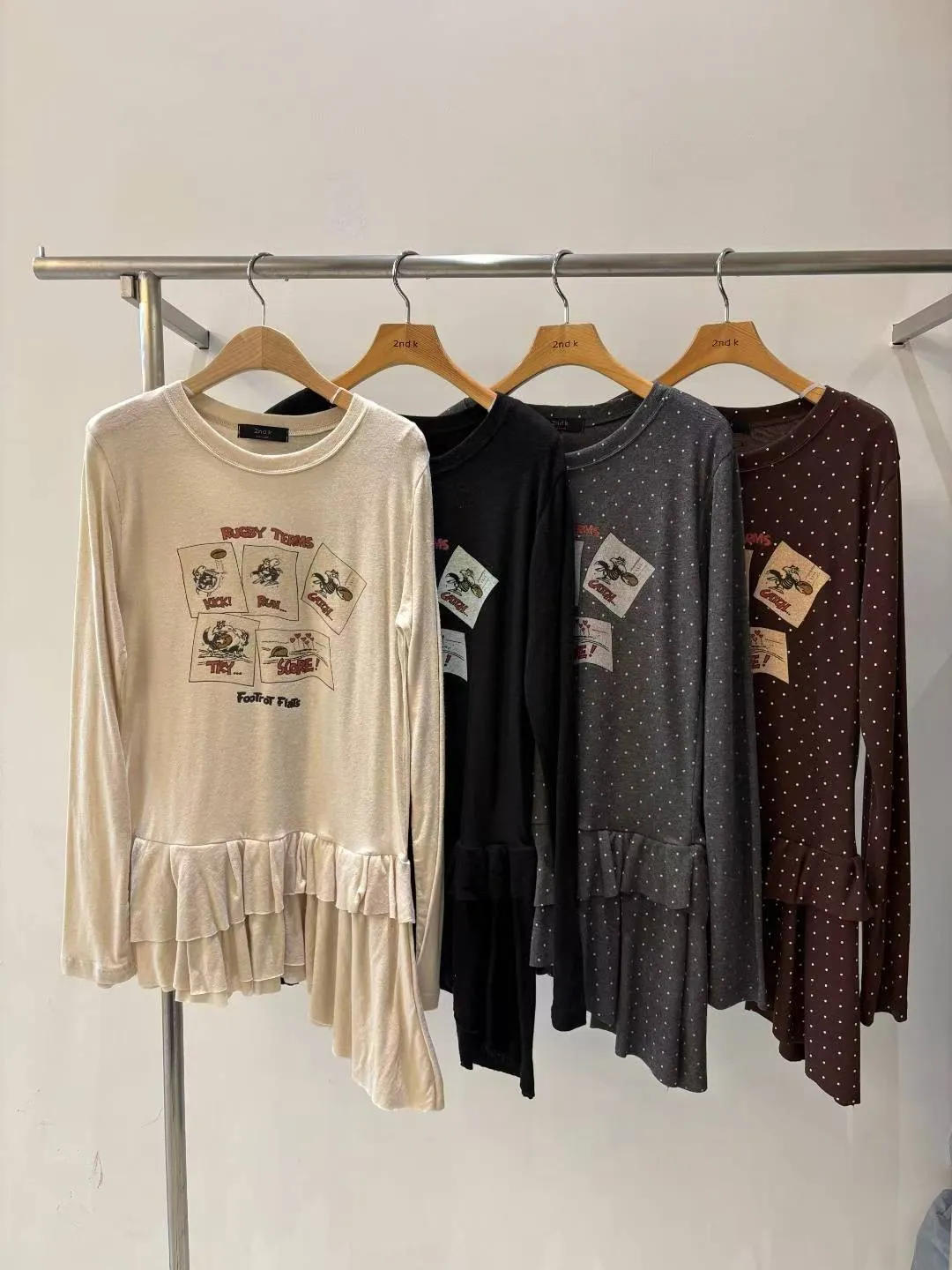 彈性棉料穿起來舒服又包容,S-L妞都可以穿純色款帶磨毛 復古仿舊的漫畫畫框印花超吸睛 穿上就像走進一格一格的分鏡裡,特別到回頭率直接飆高 下擺做成不規則斜邊,加上不對稱的抓折雙層小裙擺剛剛好的長度,可以修飾臀 走路時會悄悄飄動,整件上衣立刻變得俏皮又立體