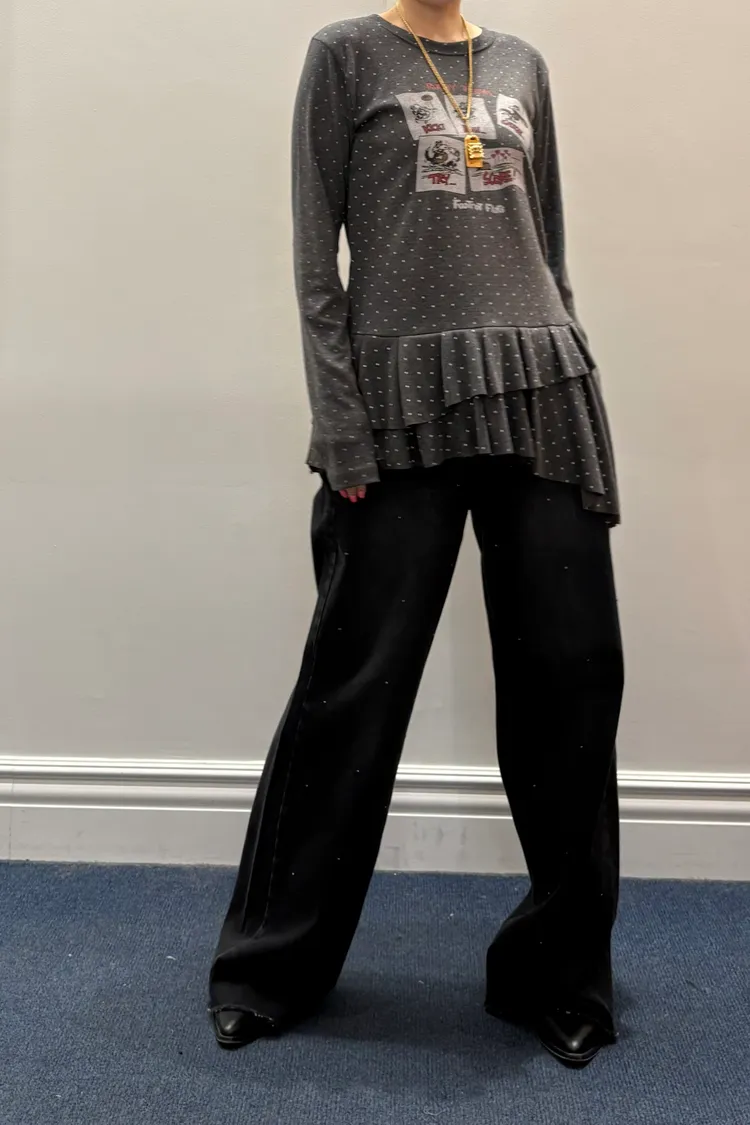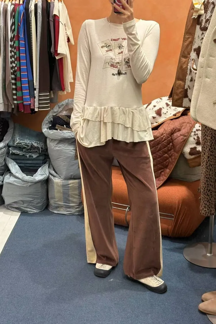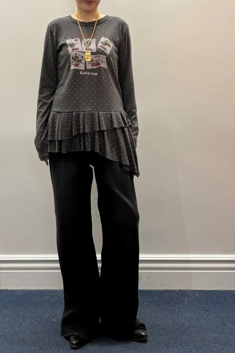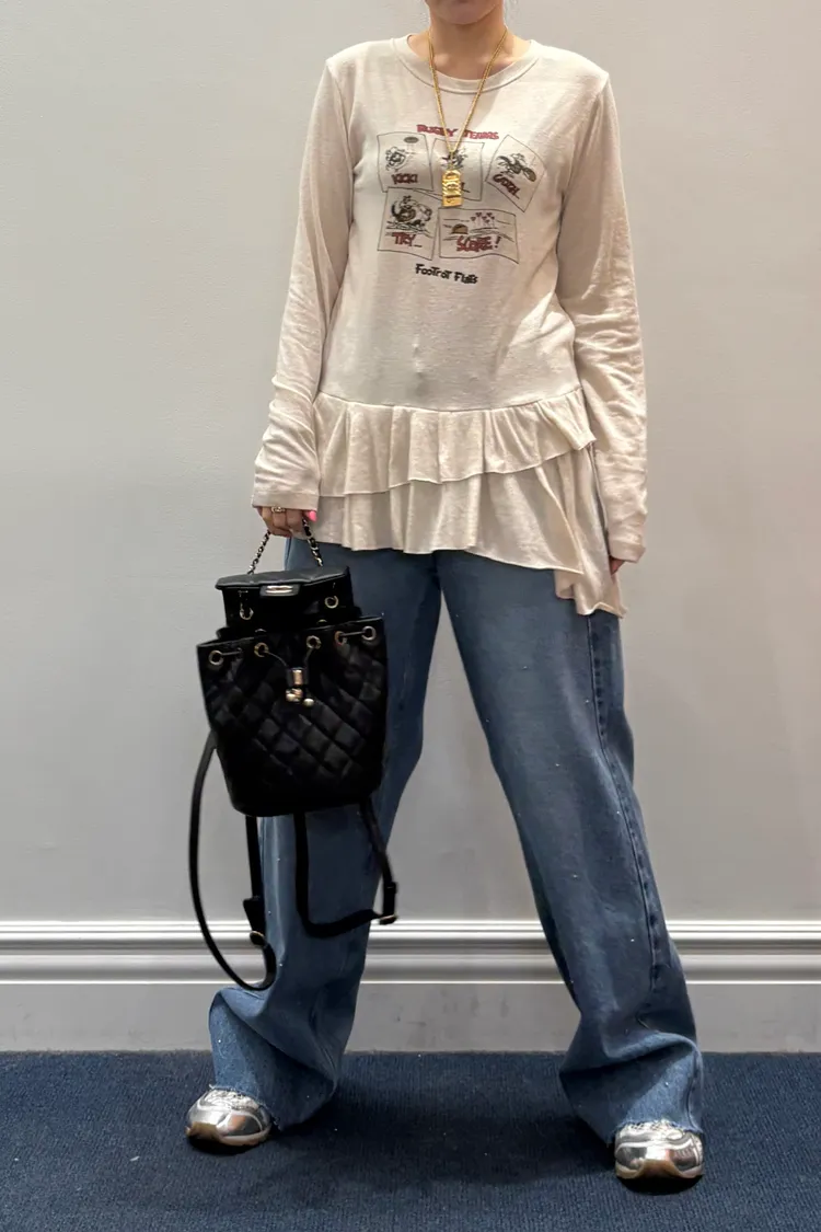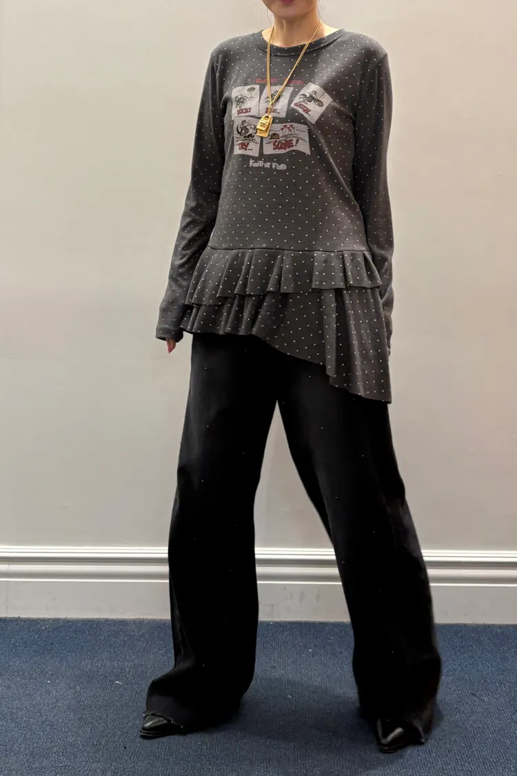 彈性棉料穿起來舒服又包容,S-L妞都可以穿純色款帶磨毛 復古仿舊的漫畫畫框印花超吸睛 穿上就像走進一格一格的分鏡裡,特別到回頭率直接飆高 下擺做成不規則斜邊,加上不對稱的抓折雙層小裙擺剛剛好的長度,可以修飾臀 走路時會悄悄飄動,整件上衣立刻變得俏皮又立體