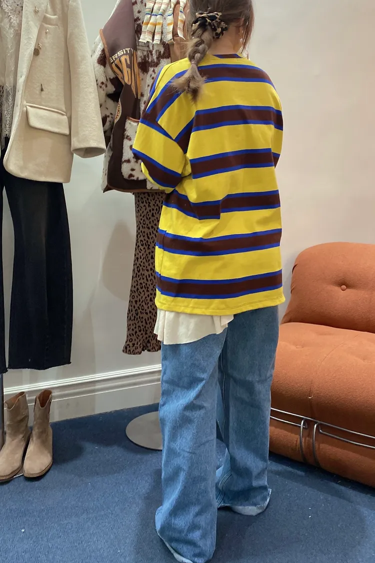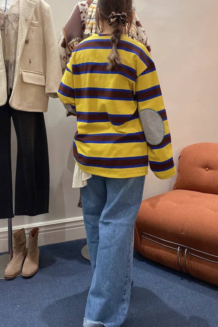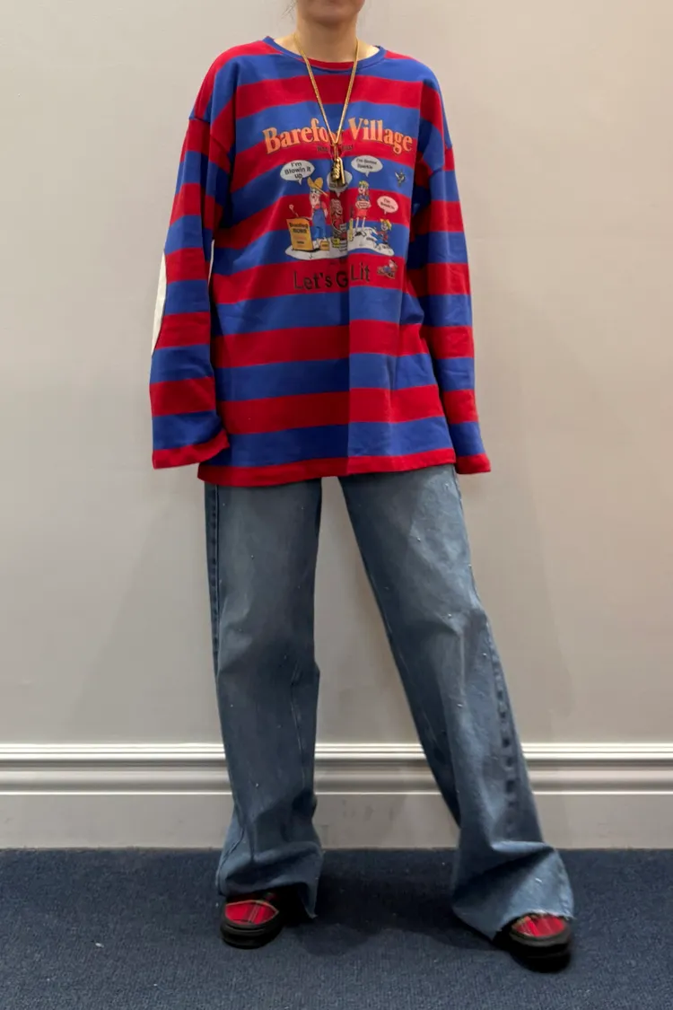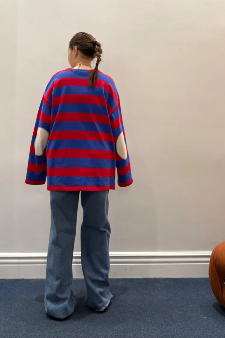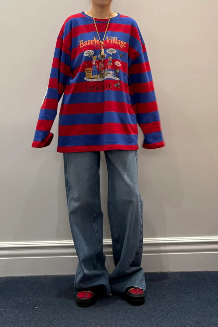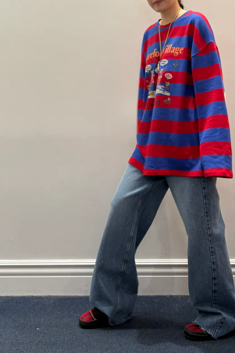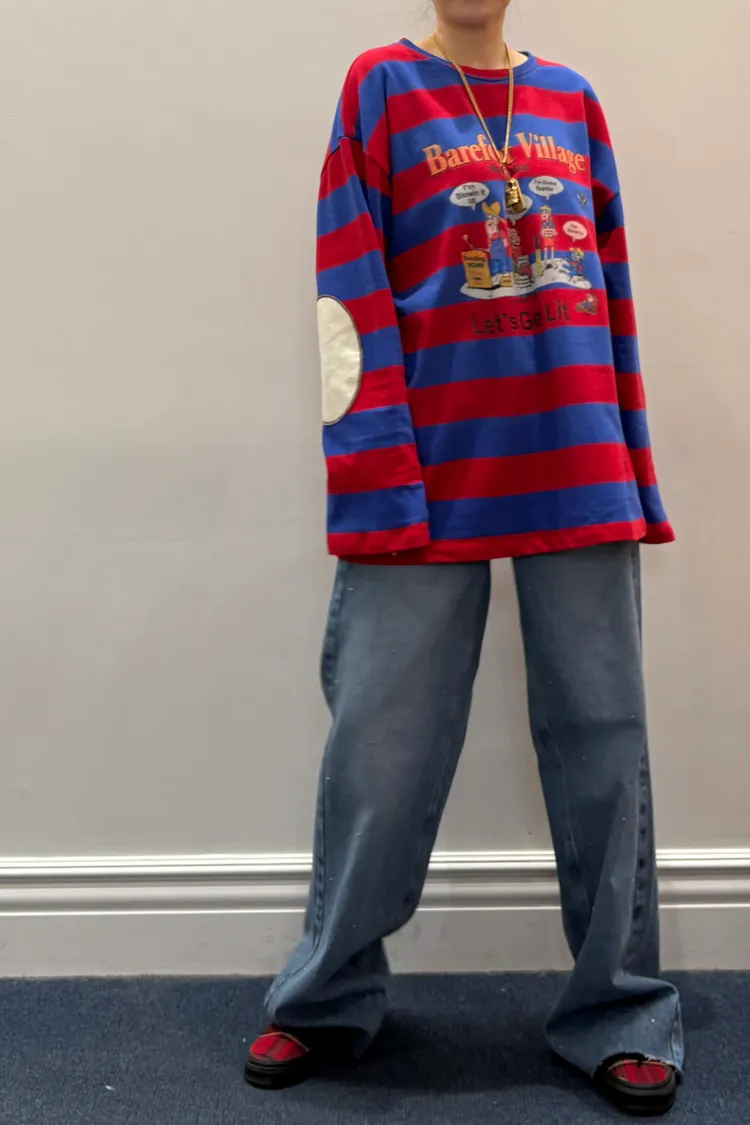 棉料穿起來超舒服,S-XL妞都可以穿 鮮豔撞色條紋一眼就抓住視線 再配上滿版復古美式人物對話漫畫圖案 完全像直接走進漫畫世界,存在感滿分又超級吸睛 兩側手袖還藏著可愛的撞色補丁小心機 舉手投足都是亮點,輕鬆一穿就很有風格