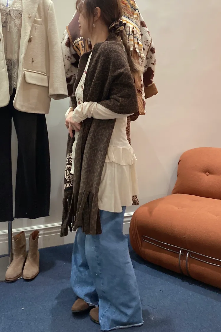 毛料柔軟又暖,帶著復古斑駁感的街頭膠印印花豹紋款雙面印花圖案不依樣 彷彿時光輕輕刷過,每一條都獨一無二 尾端的小流蘇搖曳起來像在跳舞,細節感滿分 經典條紋款低調又百搭,豹紋款則超有個性 圍上瞬間提升整體穿搭層次感 冷天裡也能展現小俏皮和高級感 是秋冬必收的暖心小物尺寸很大可以當圍巾也可以當披肩