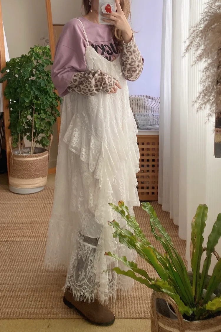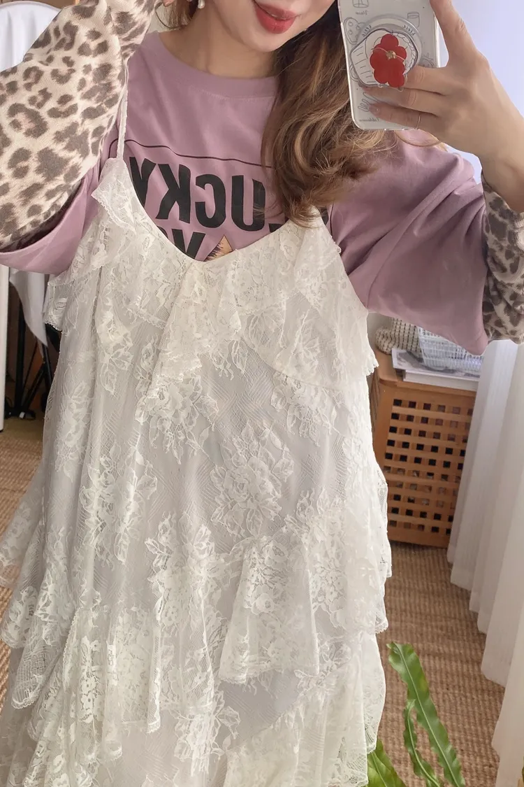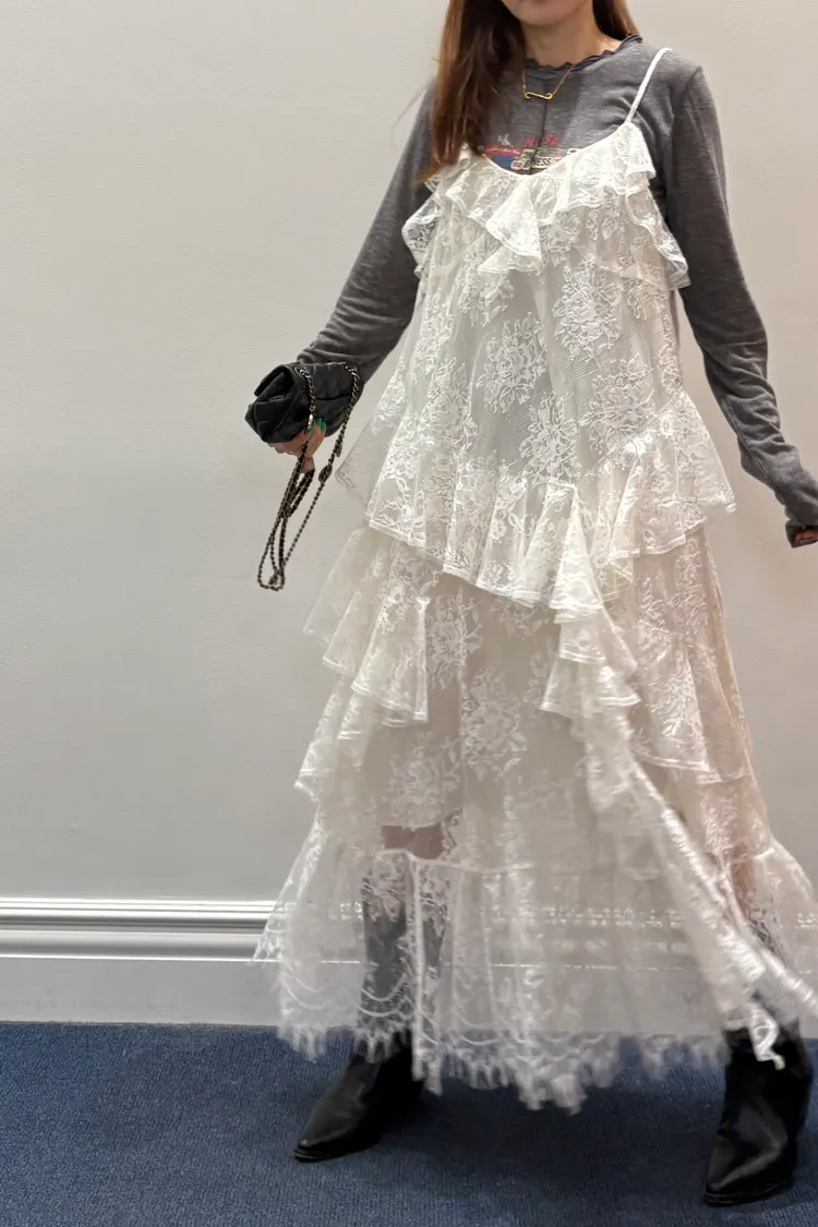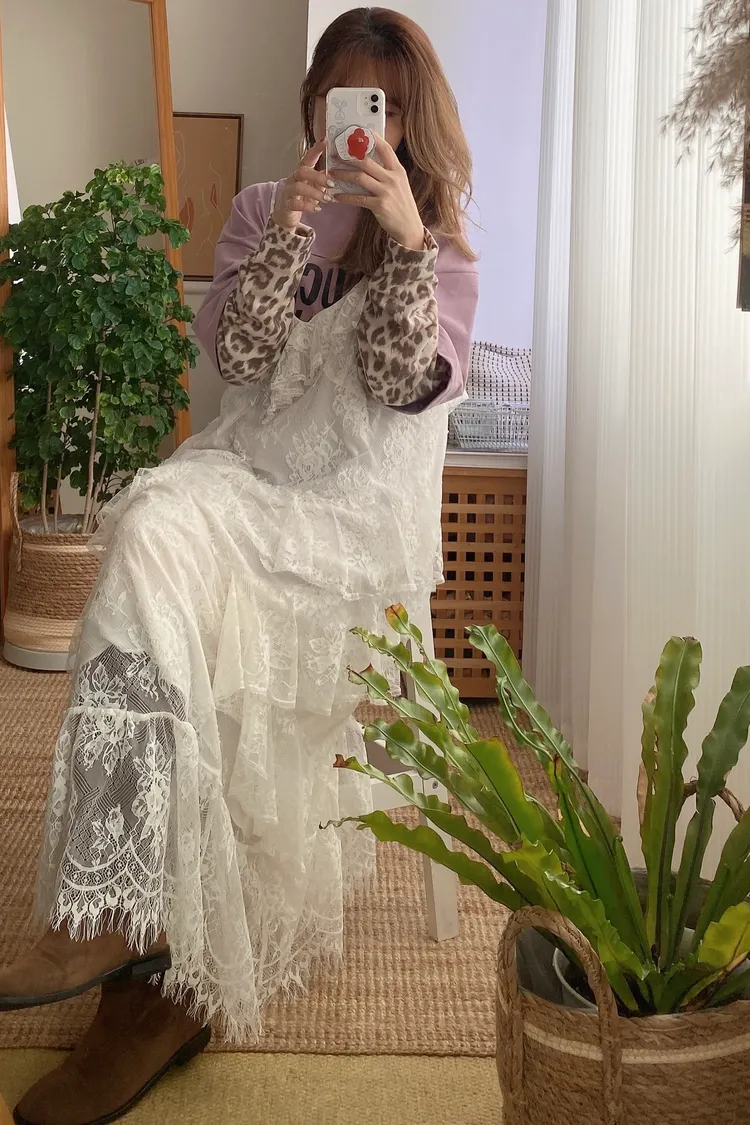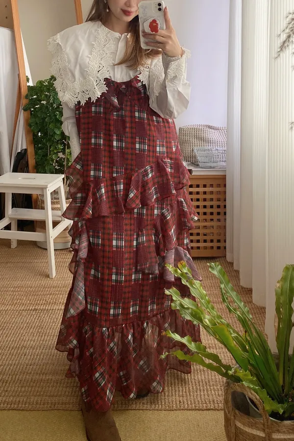 一年四季都可以穿的軟料蕾絲自帶溫柔濾鏡,穿起來輕盈舒服 寬鬆版型,S-L妞都可以穿 肩帶可調、背心洞口大內搭棉T穿都沒問題 層次荷葉裙襬不規則拼接一路延伸到斜邊 走路時像輕風在裙間跳舞,層次感超美又有內襯不怕透 可甜可仙的那種高級感,讓你隨便穿都很好看 相同版型,QLK09是格紋雪紡面料,可一併參考