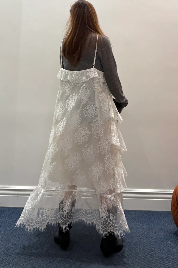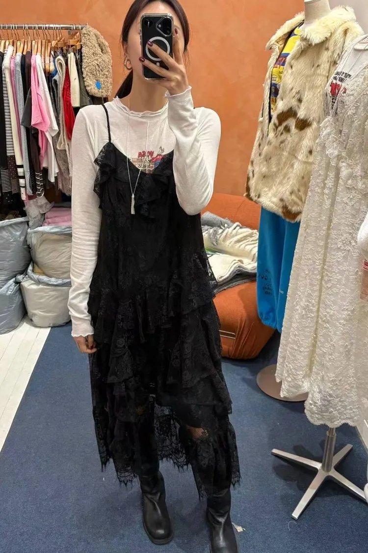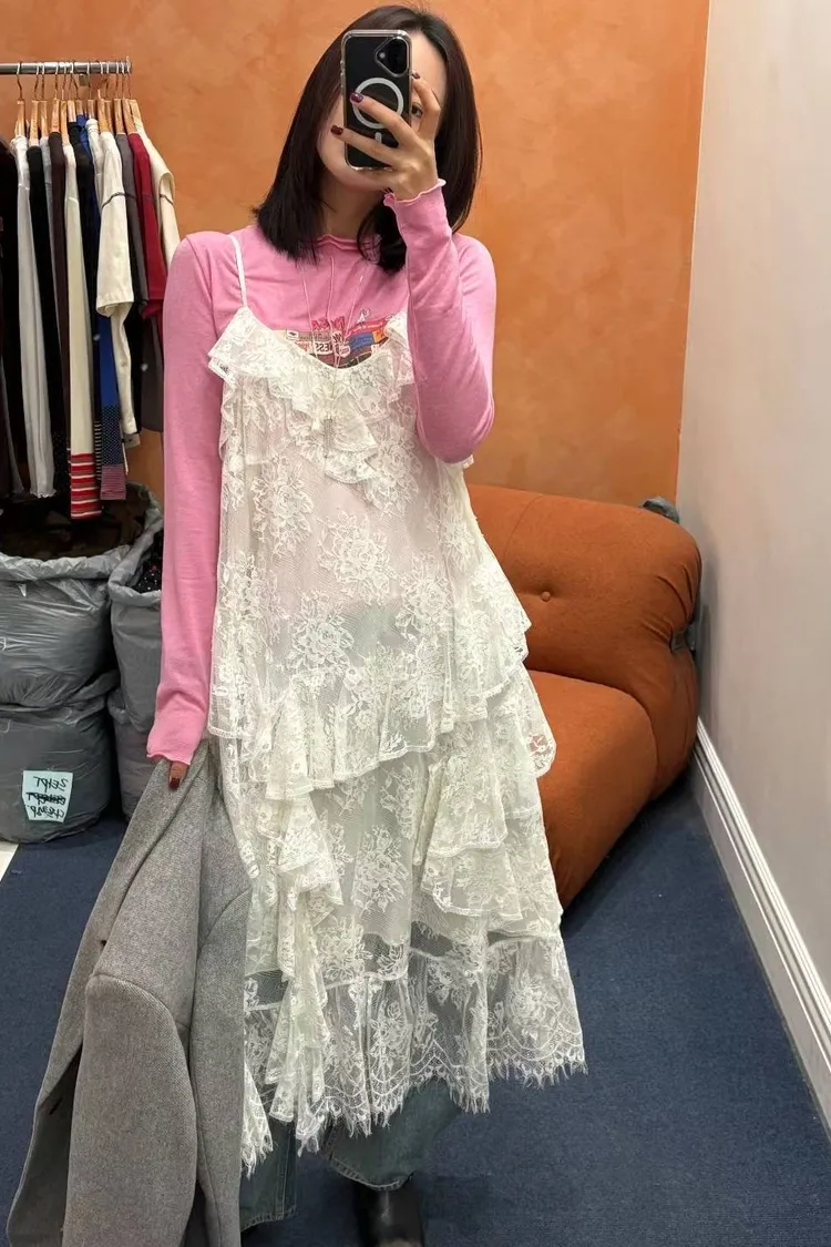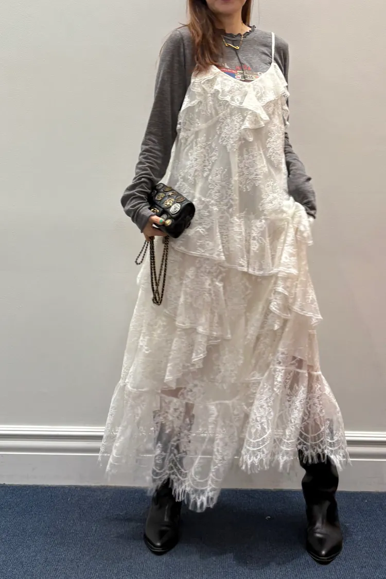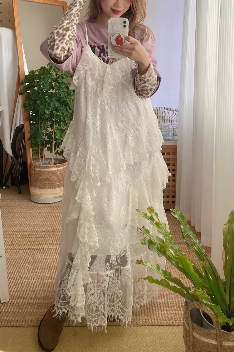一年四季都可以穿的軟料蕾絲自帶溫柔濾鏡,穿起來輕盈舒服 寬鬆版型,S-L妞都可以穿 肩帶可調、背心洞口大內搭棉T穿都沒問題 層次荷葉裙襬不規則拼接一路延伸到斜邊 走路時像輕風在裙間跳舞,層次感超美又有內襯不怕透 可甜可仙的那種高級感,讓你隨便穿都很好看 相同版型,QLK09是格紋雪紡面料,可一併參考