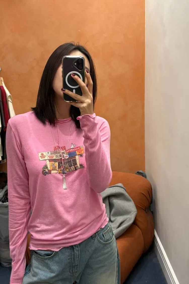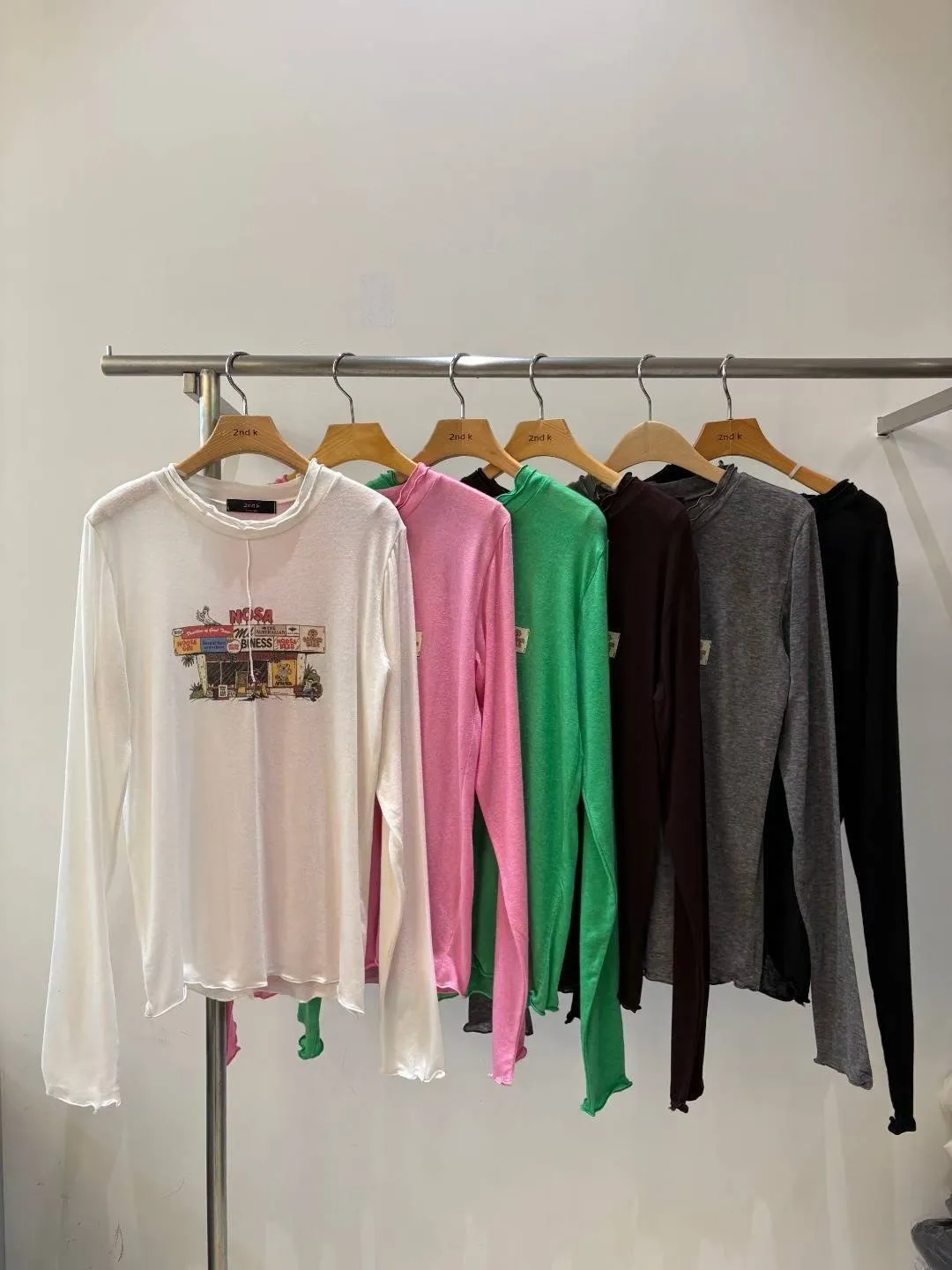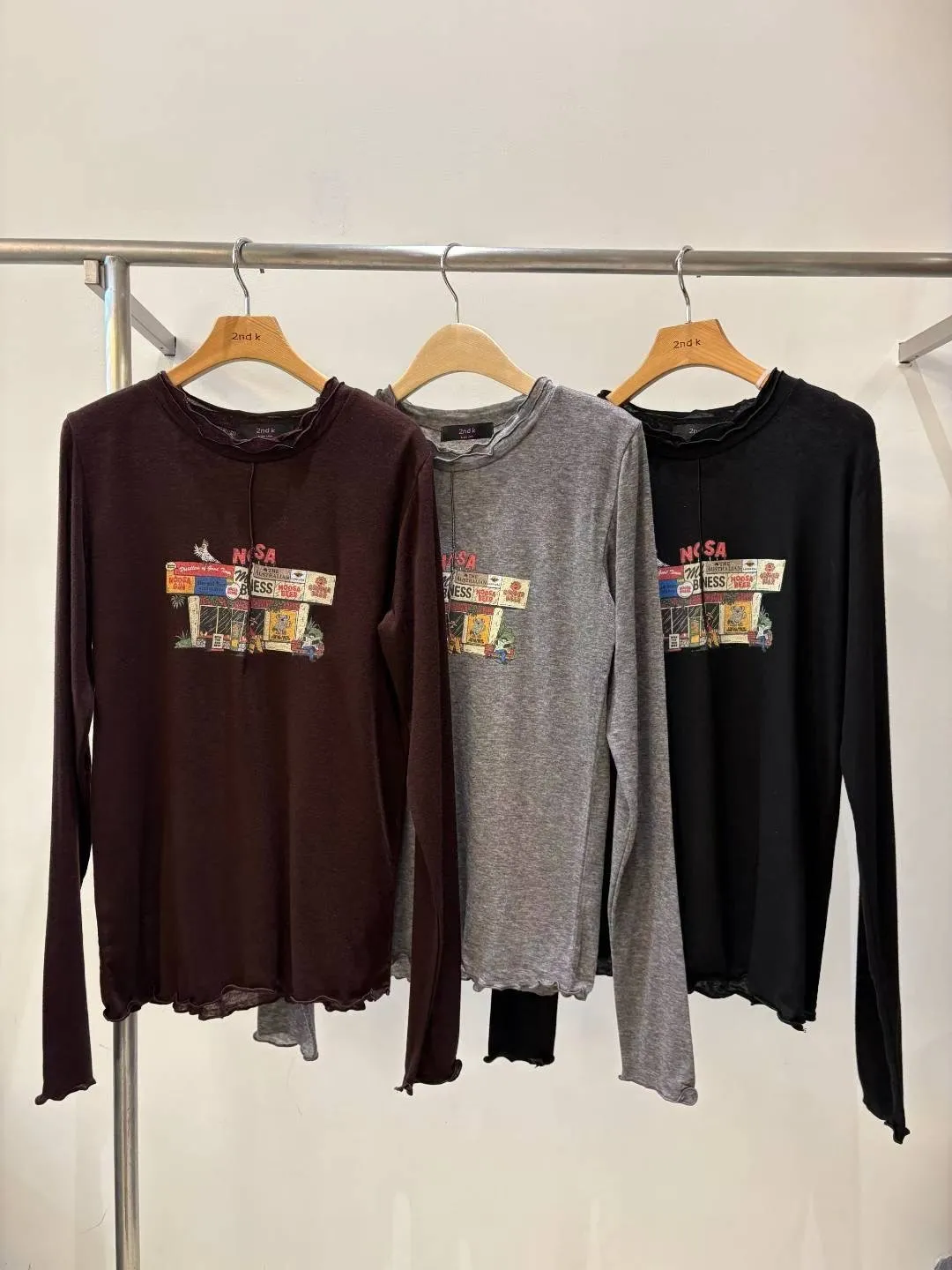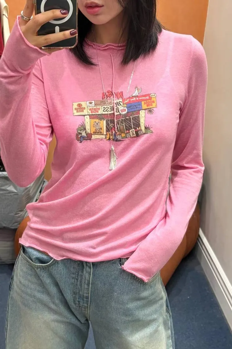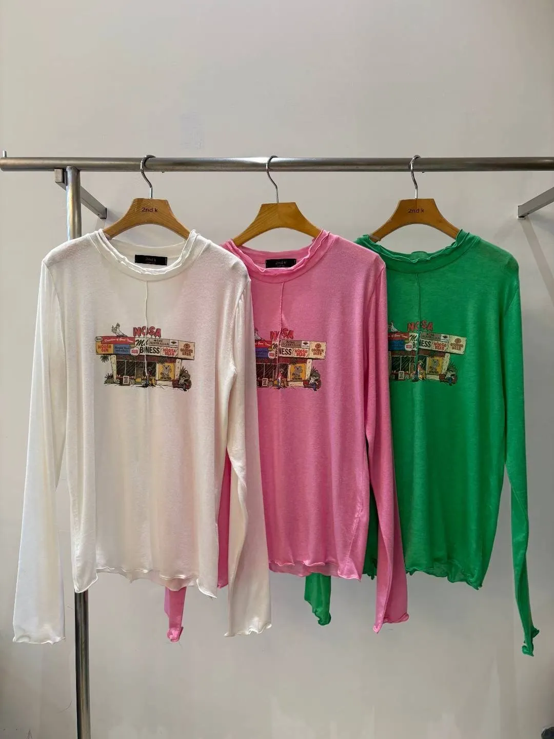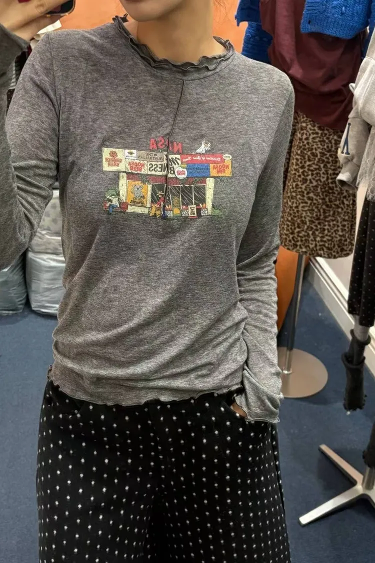 QLK11捲邊畫報商店插畫彈力棉上衣
