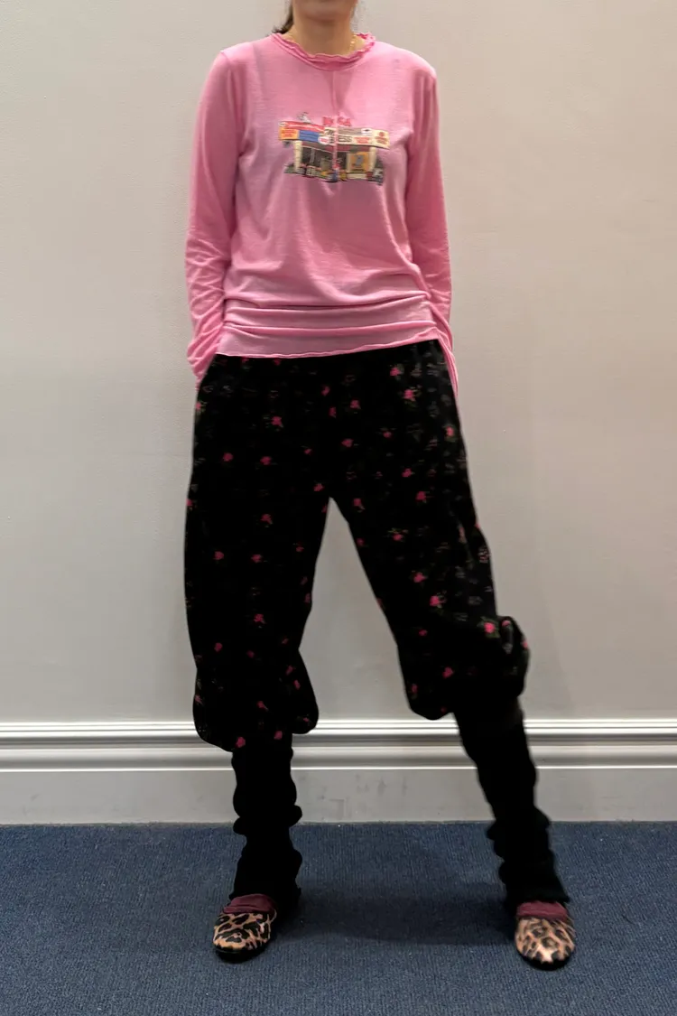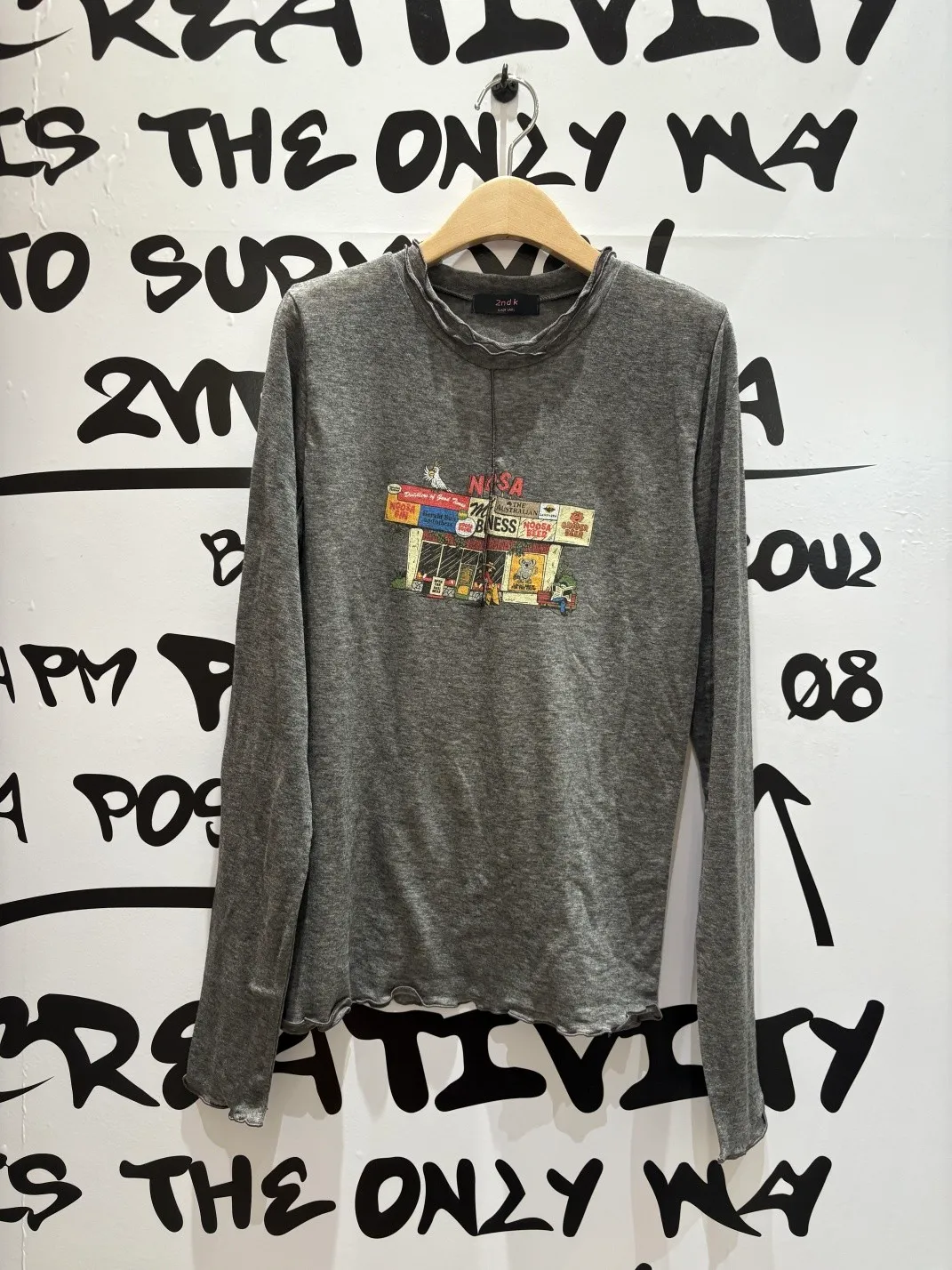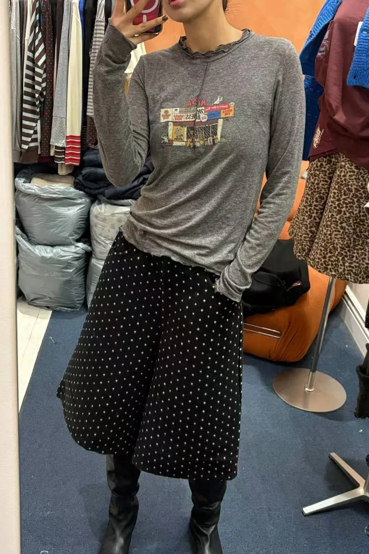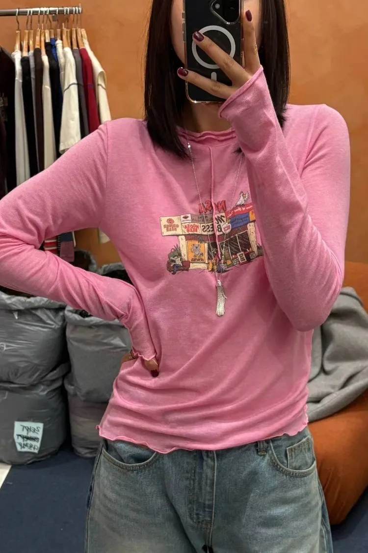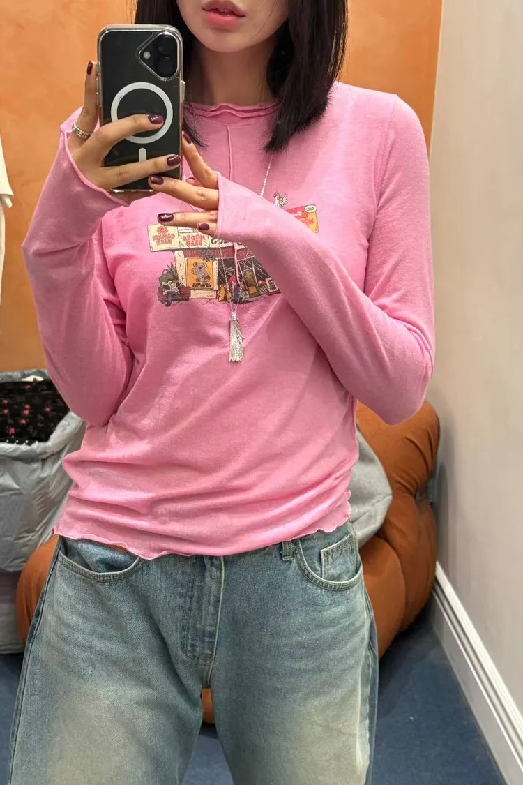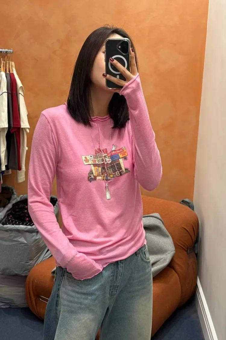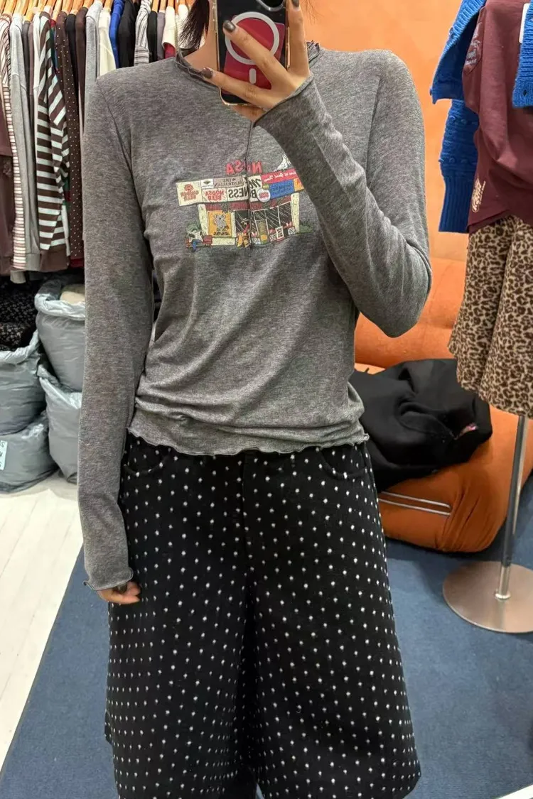 QLK11捲邊畫報商店插畫彈力棉上衣