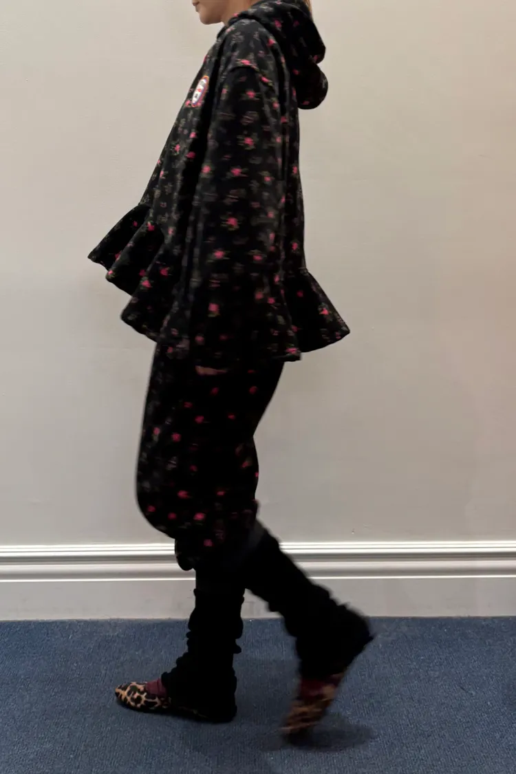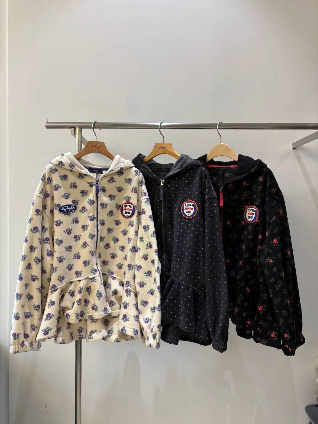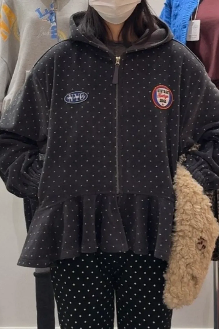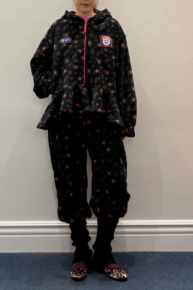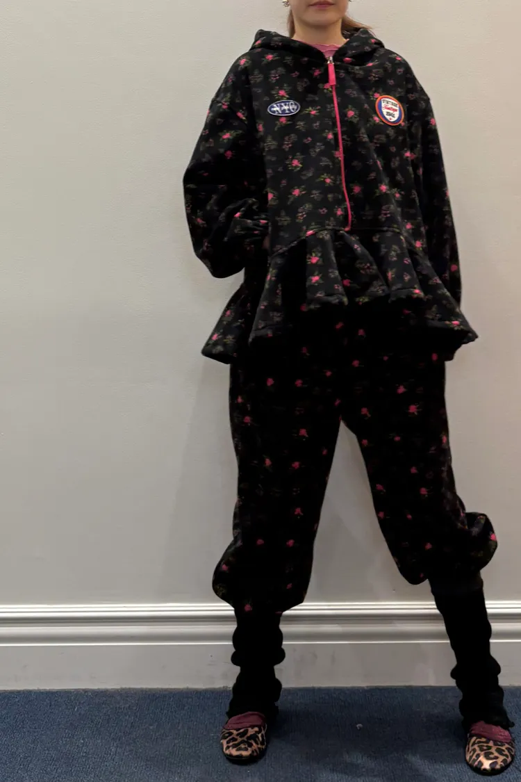 暖呼呼絨料材質,穿起來輕盈又超暖 寬鬆版型,S-L妞都可以穿 連帽外套下擺是立體荷葉小裙擺,前短後長會蓋臀 搭配碎花、點點的可愛印花,和刺繡布章,瞬間多一點少女感、有口袋 長褲腰部整圈彈性鬆緊、有口袋 褲腳特別做了彈性毛料拼接,像自帶襪套一樣 不用再額外搭襪子,直接幫妞配好 保暖和造型一次完成