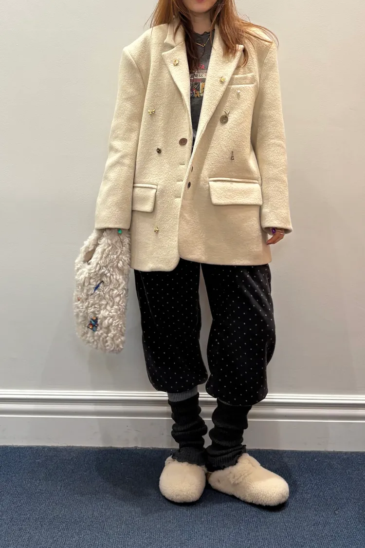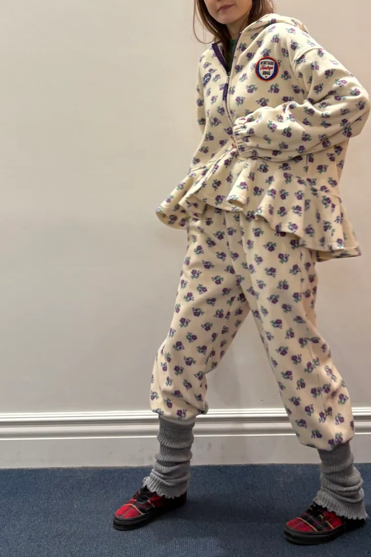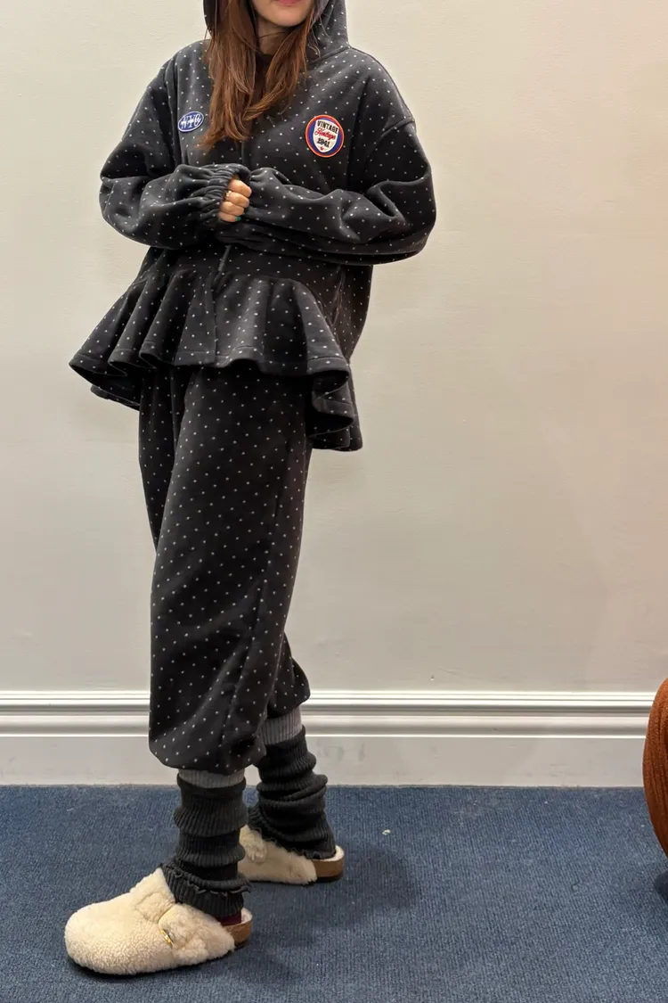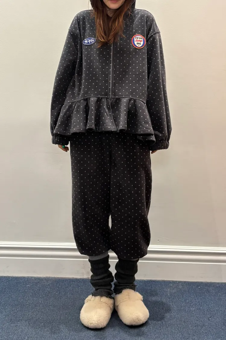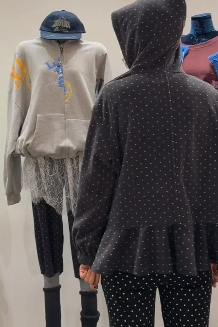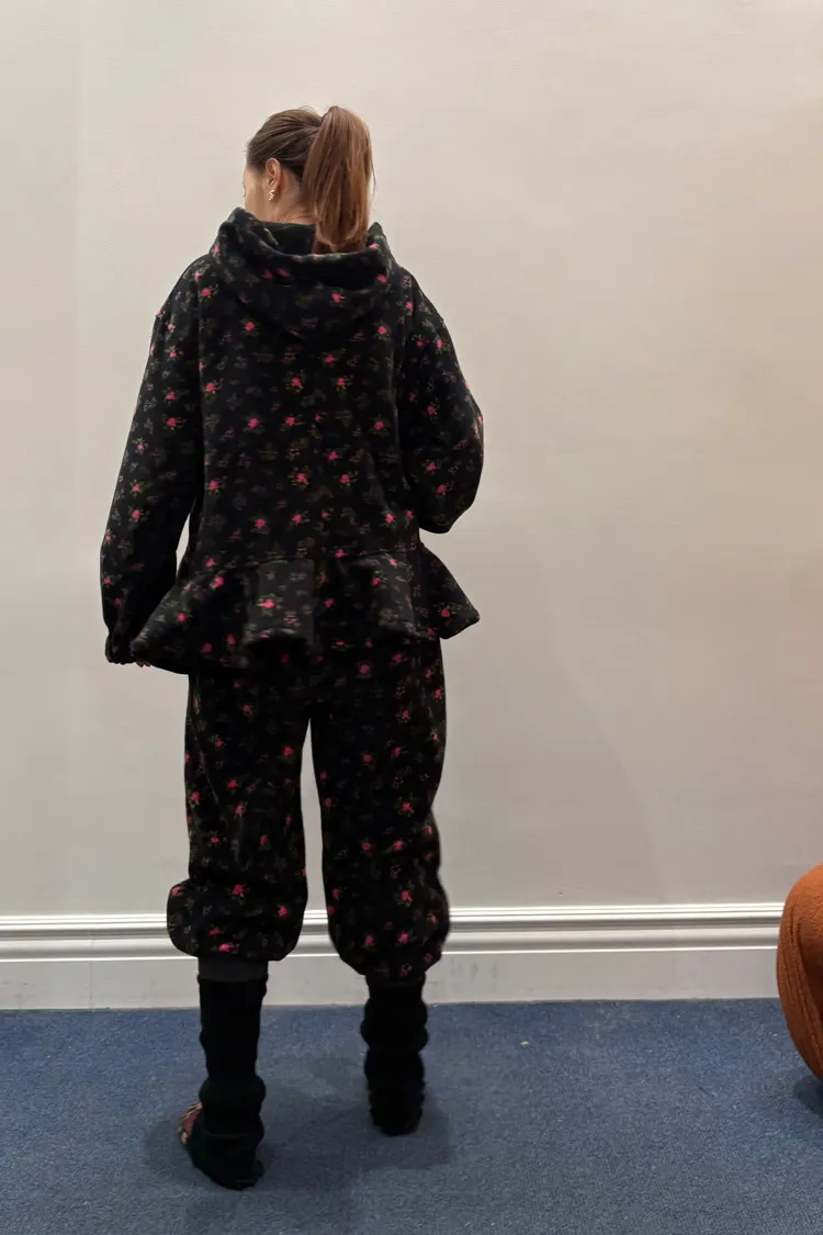 暖呼呼絨料材質,穿起來輕盈又超暖 寬鬆版型,S-L妞都可以穿 連帽外套下擺是立體荷葉小裙擺,前短後長會蓋臀 搭配碎花、點點的可愛印花,和刺繡布章,瞬間多一點少女感、有口袋 長褲腰部整圈彈性鬆緊、有口袋 褲腳特別做了彈性毛料拼接,像自帶襪套一樣 不用再額外搭襪子,直接幫妞配好 保暖和造型一次完成