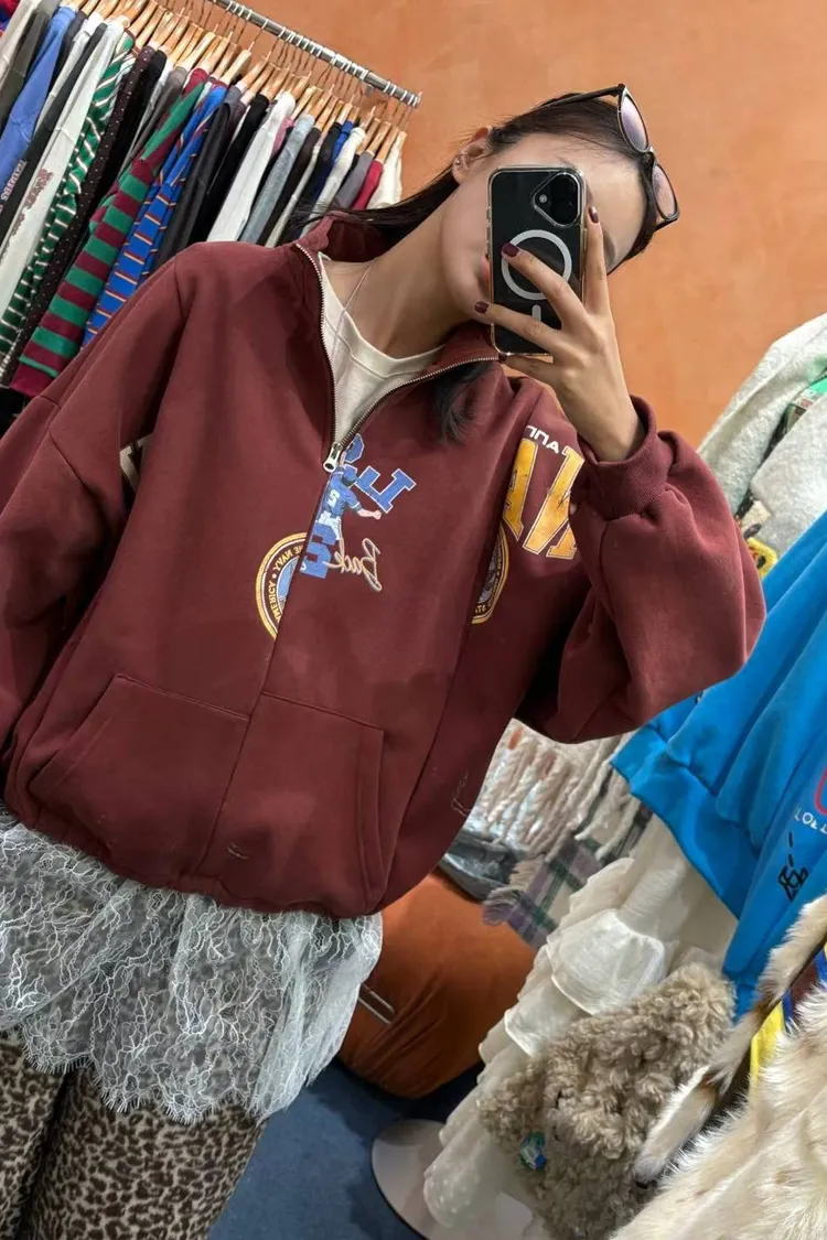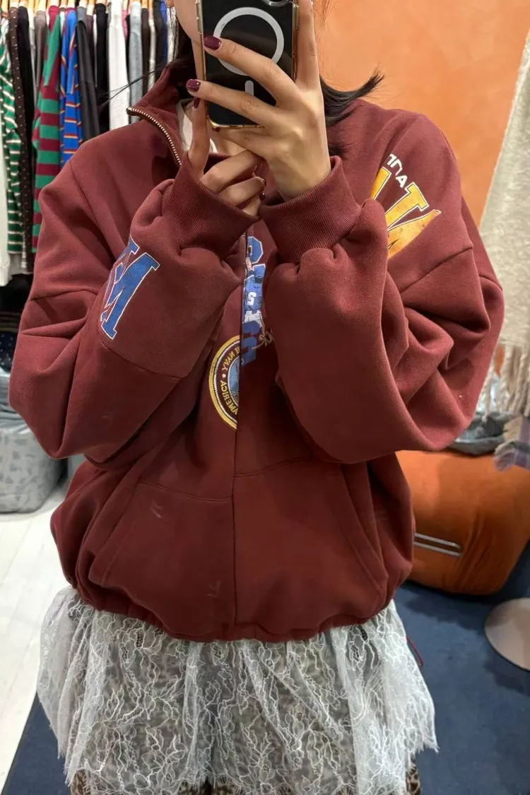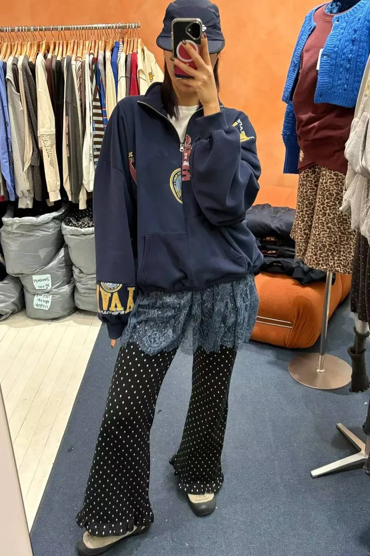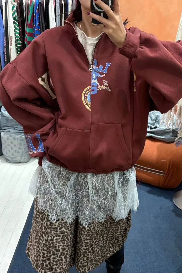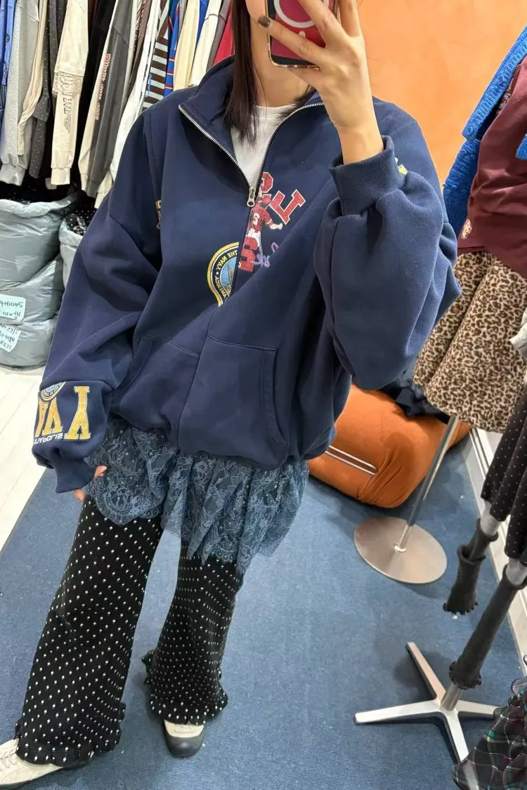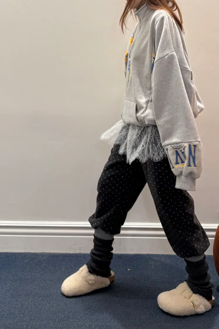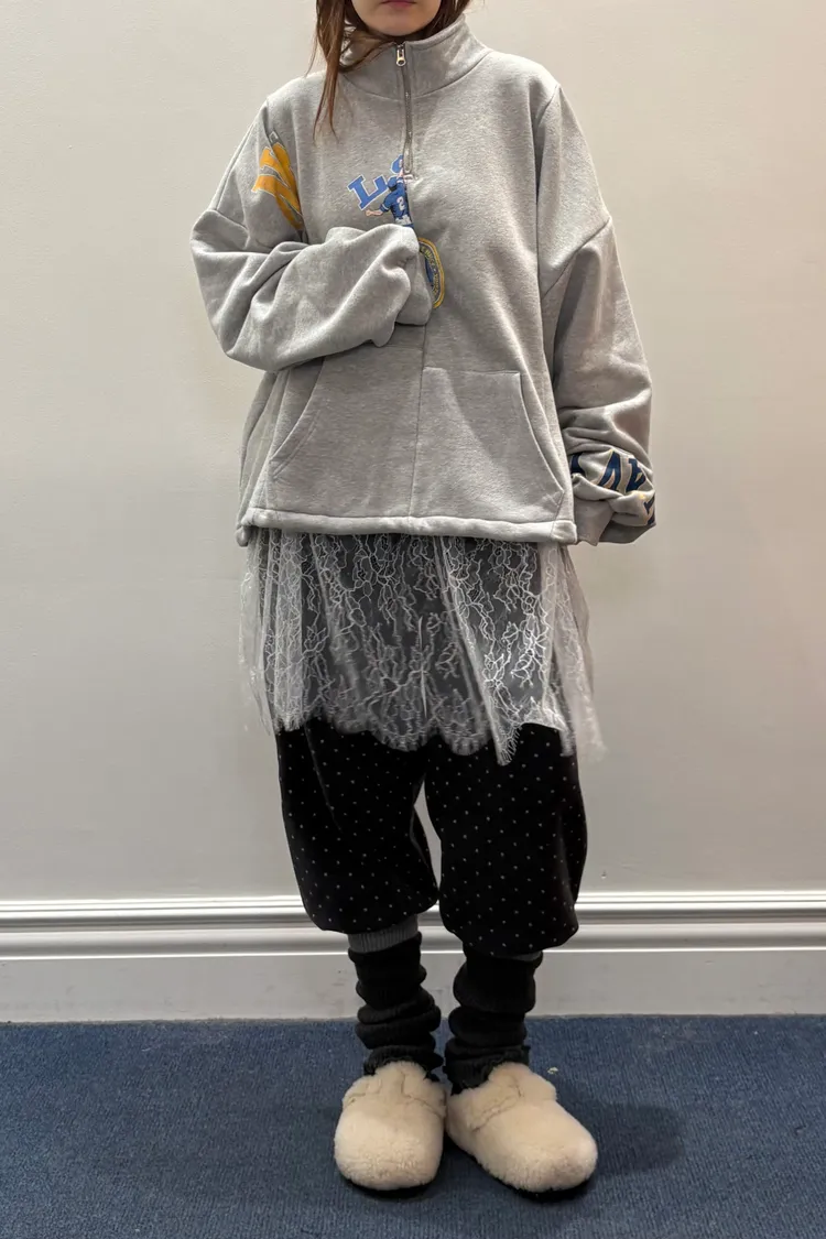 棉料材質穿起來超舒服、內裡有加絨落肩立領寬鬆蓋臀版型超顯瘦 S-XL妞都可以穿 不規則拼接搭上運動風標誌印花,整體帶點街頭個性感 睫毛蕾絲拼接下襬,蕾絲有鈕扣可拆卸 零難度切換「酷帥運動」或「甜甜小女人」兩種風格 下擺抽繩讓版型更好調整,想挺想鬆都 OK 有口袋