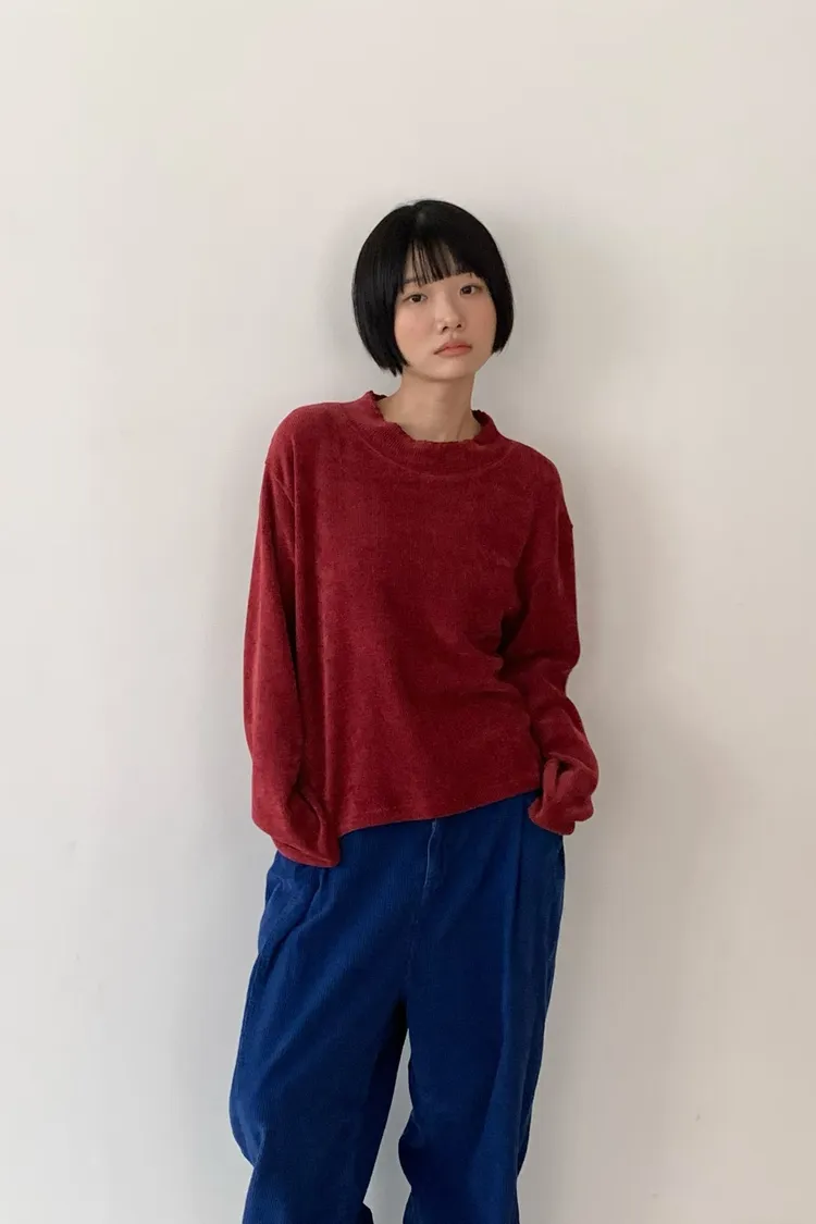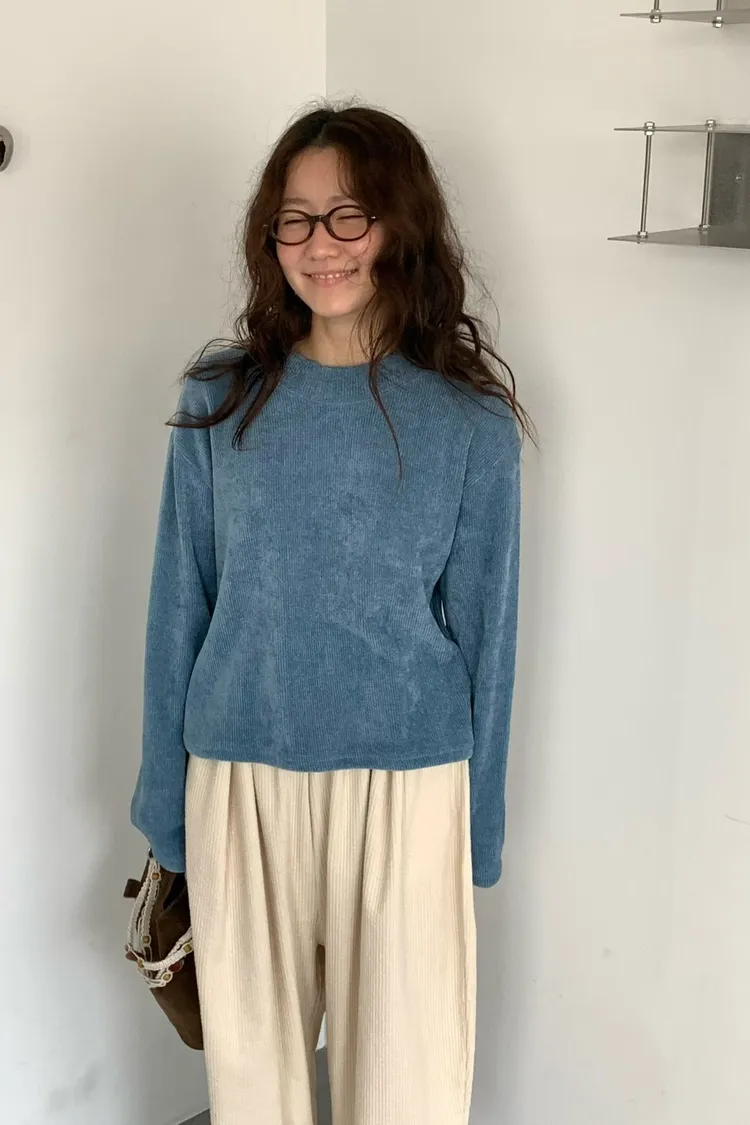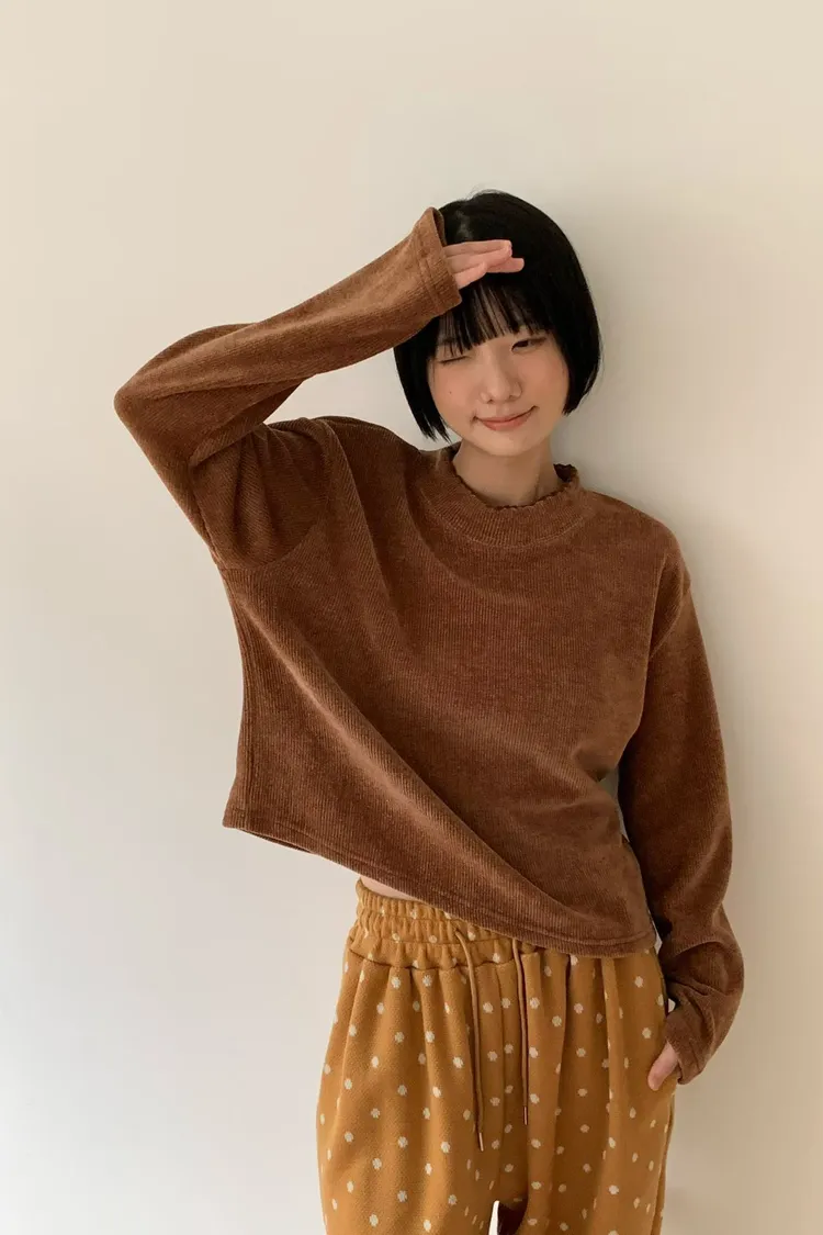 QLV01軟萌立領坑條絨感小花邊上衣