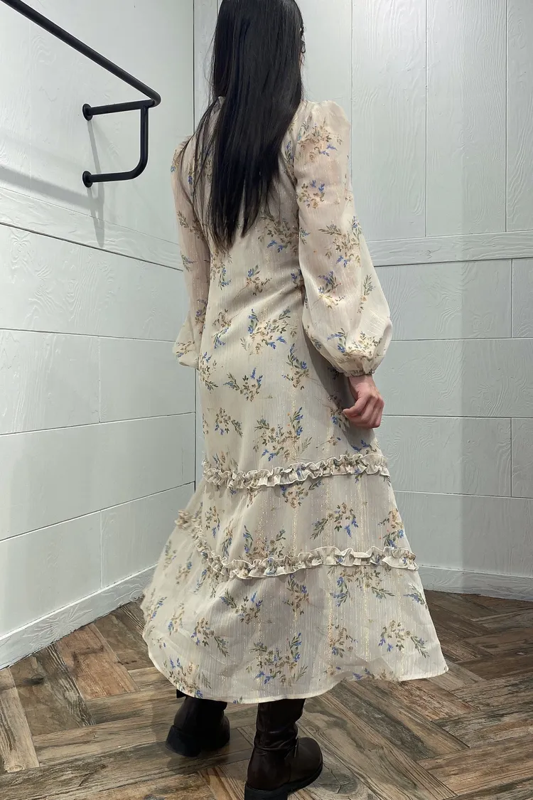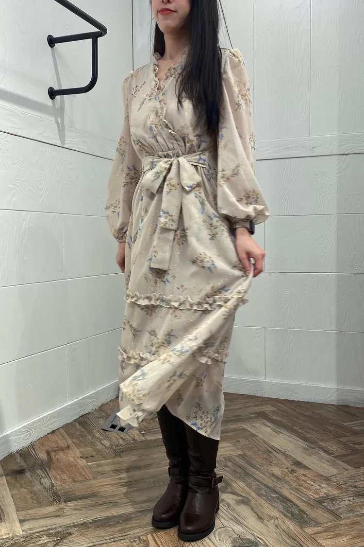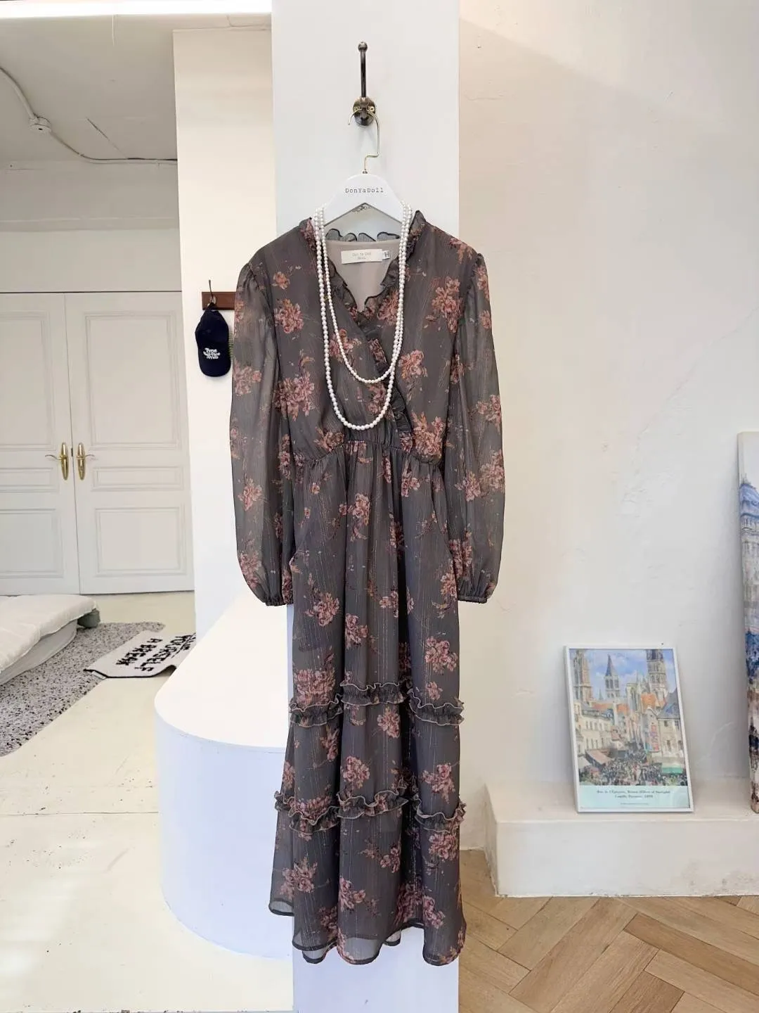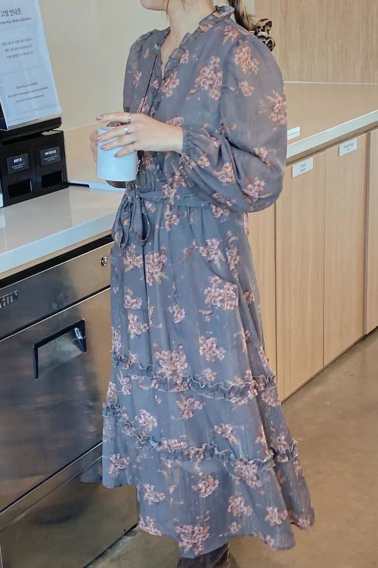 裙身拼接的兩條抓皺木耳花邊,呈現出層次感