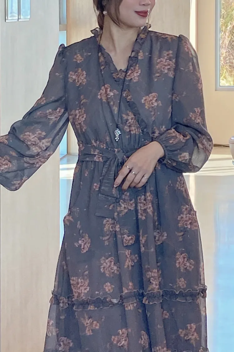 V領拼接柔柔的荷葉花邊,臉型修飾很溫柔