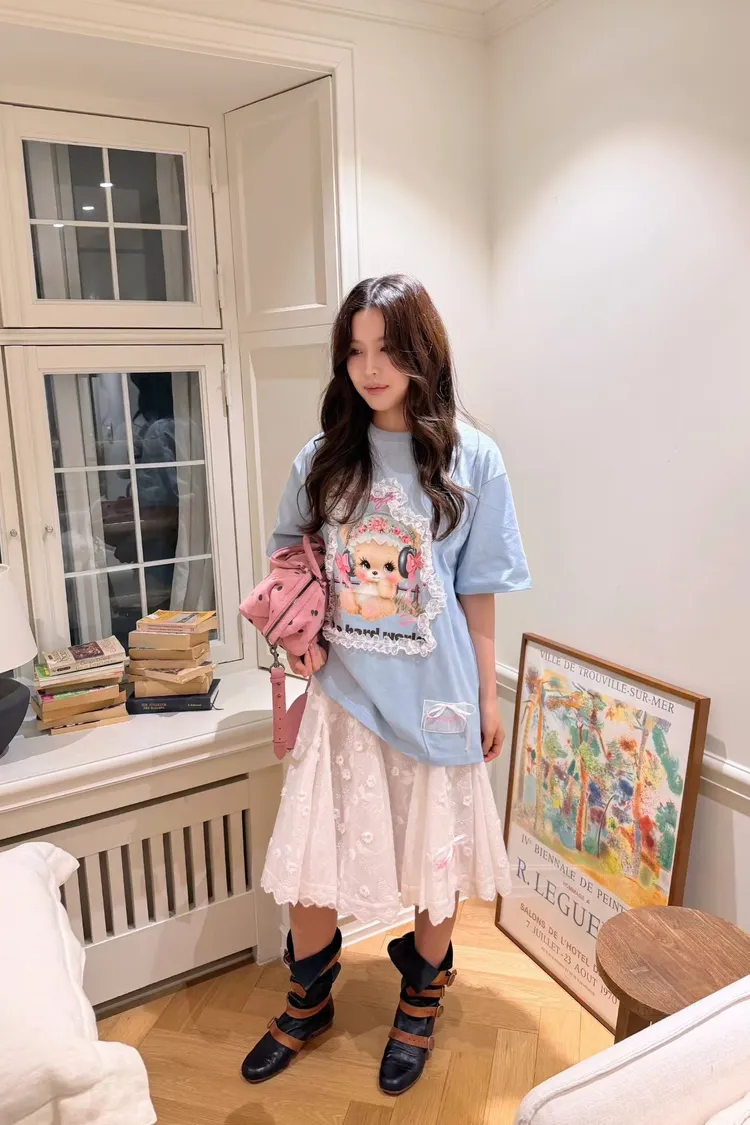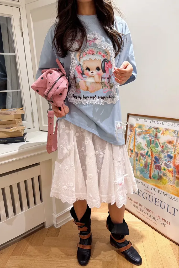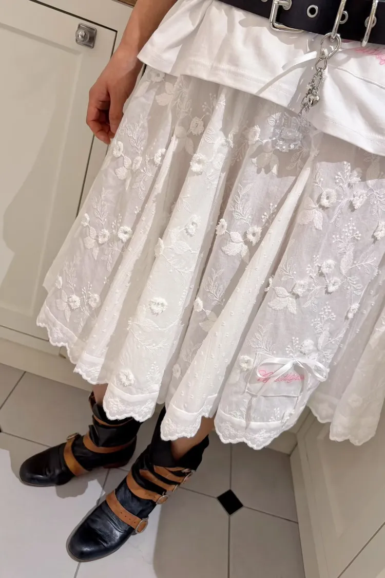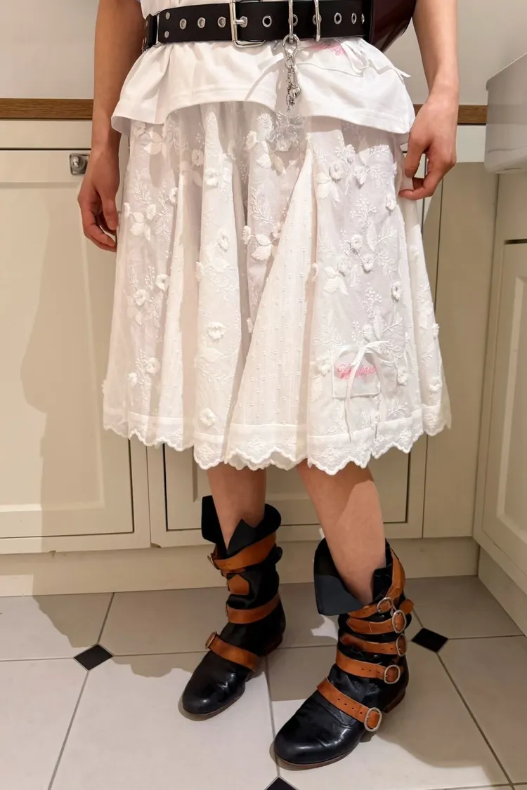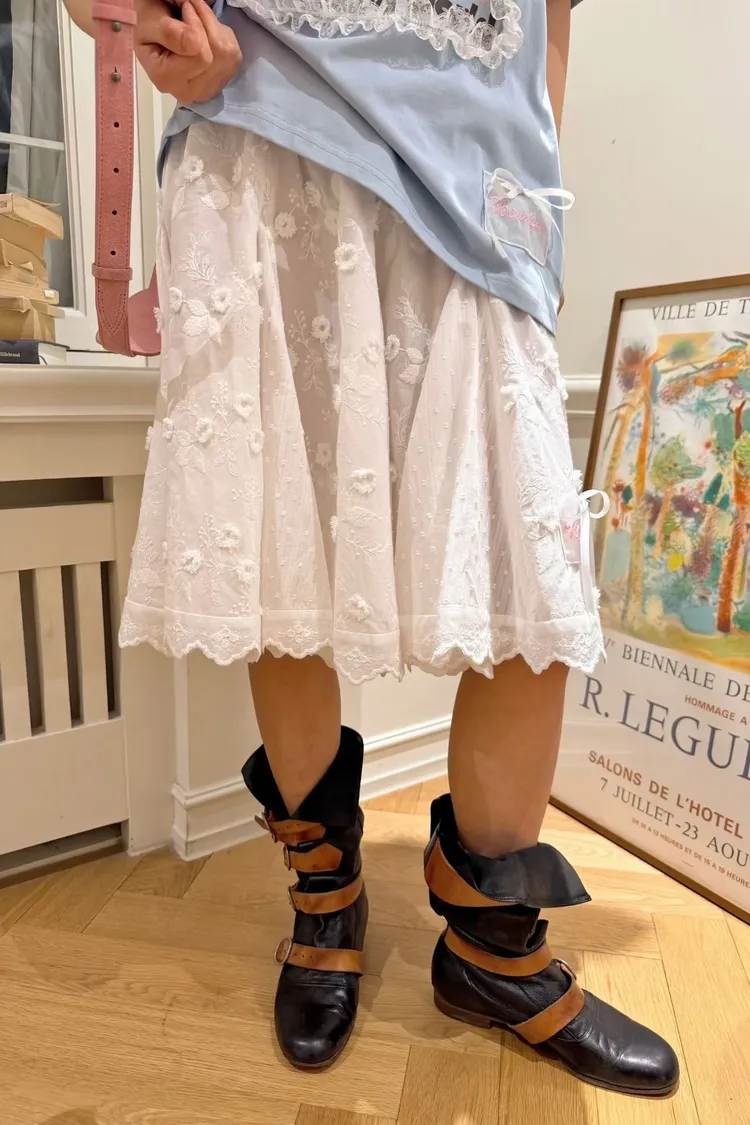 立體刺繡蕾絲花朵面料,裙襬有立體剪裁拼接 拼接不同刺繡蕾絲增添層次感與精緻細節 腰部整圈彈性鬆緊,S-L妞都可以穿 輕鬆穿出優雅與甜美兼具的造型 是日常、約會或假日穿搭的浪漫單品 沒有內襯建議需另外內搭