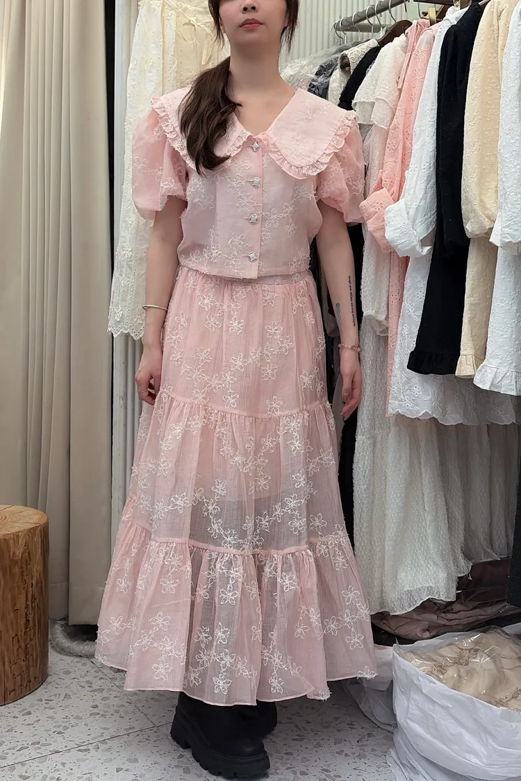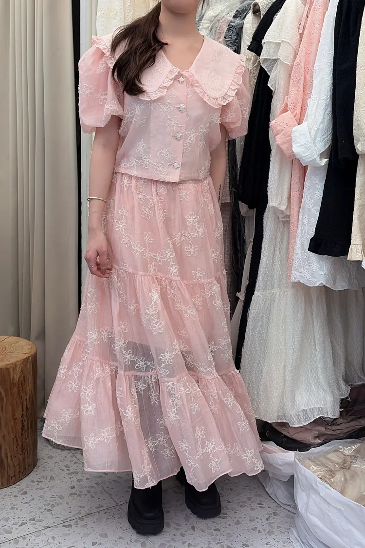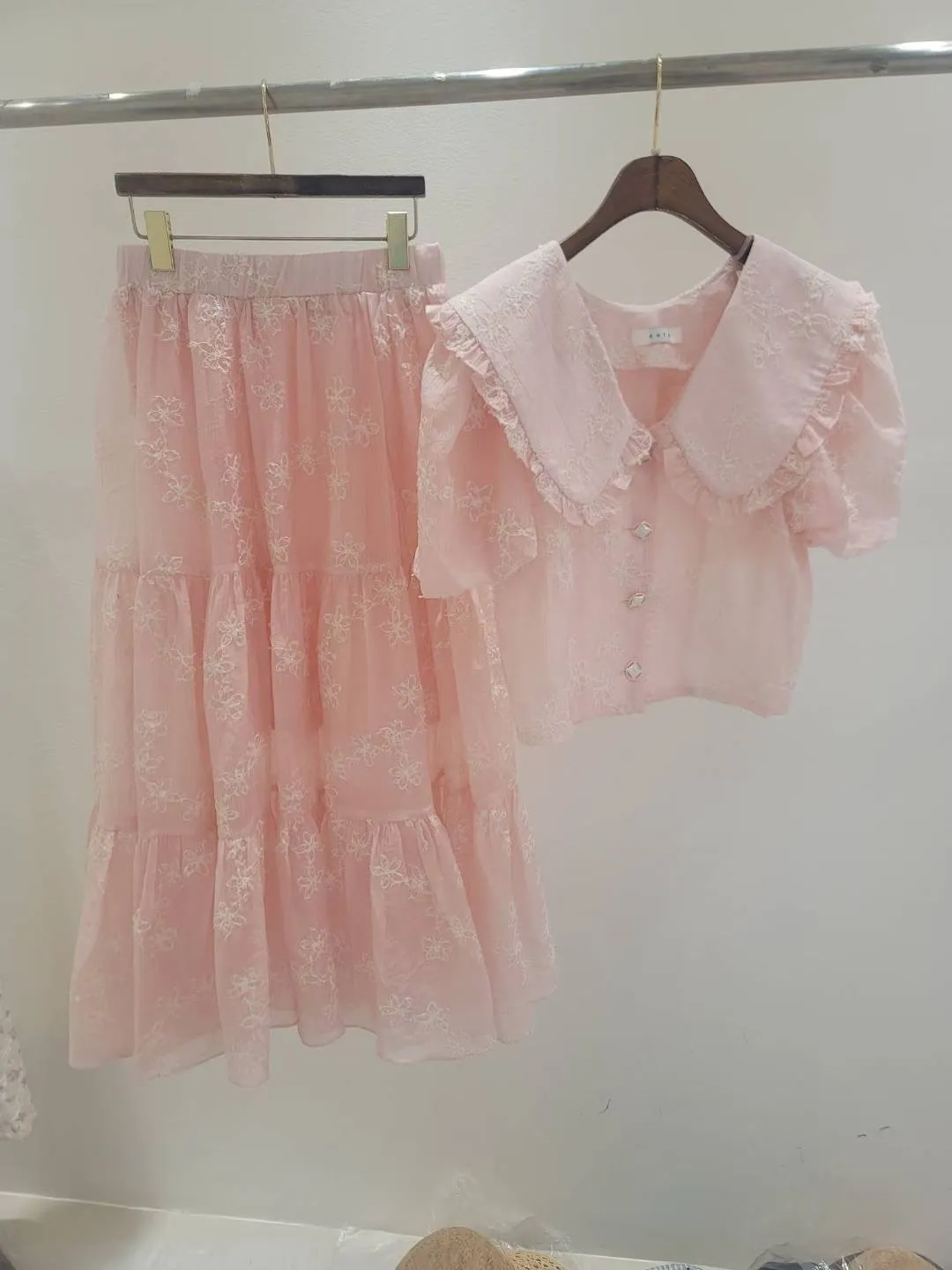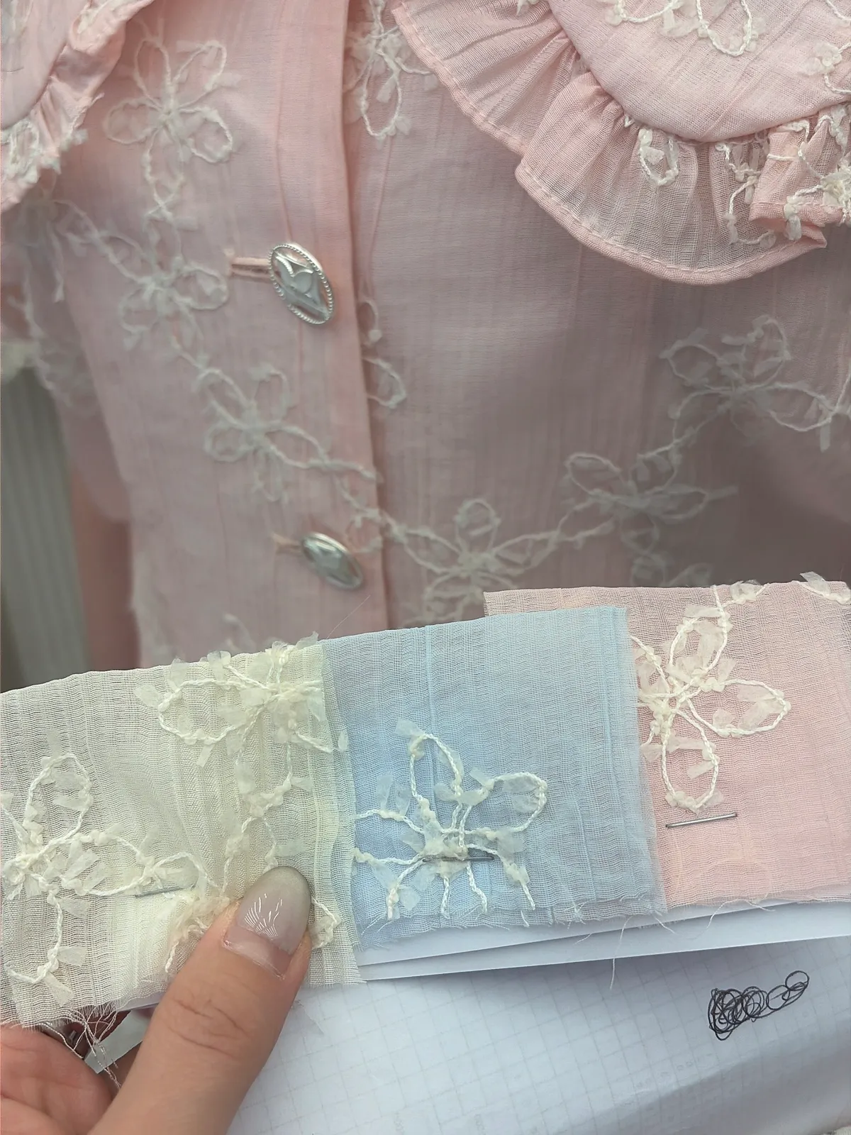 短版襯衫搭配長裙,下擺自然飄逸,穿起來超有層次感緹花網紗面料有細緻線絲花朵裝飾浪漫又柔美襯衫設計了翻領拼接抓折花邊,袖子採用公主袖剪裁搭配特殊造型釦,細節滿滿又精緻小寬鬆版型,S-L妞都可以穿長裙腰部整圈彈性鬆緊,有內襯