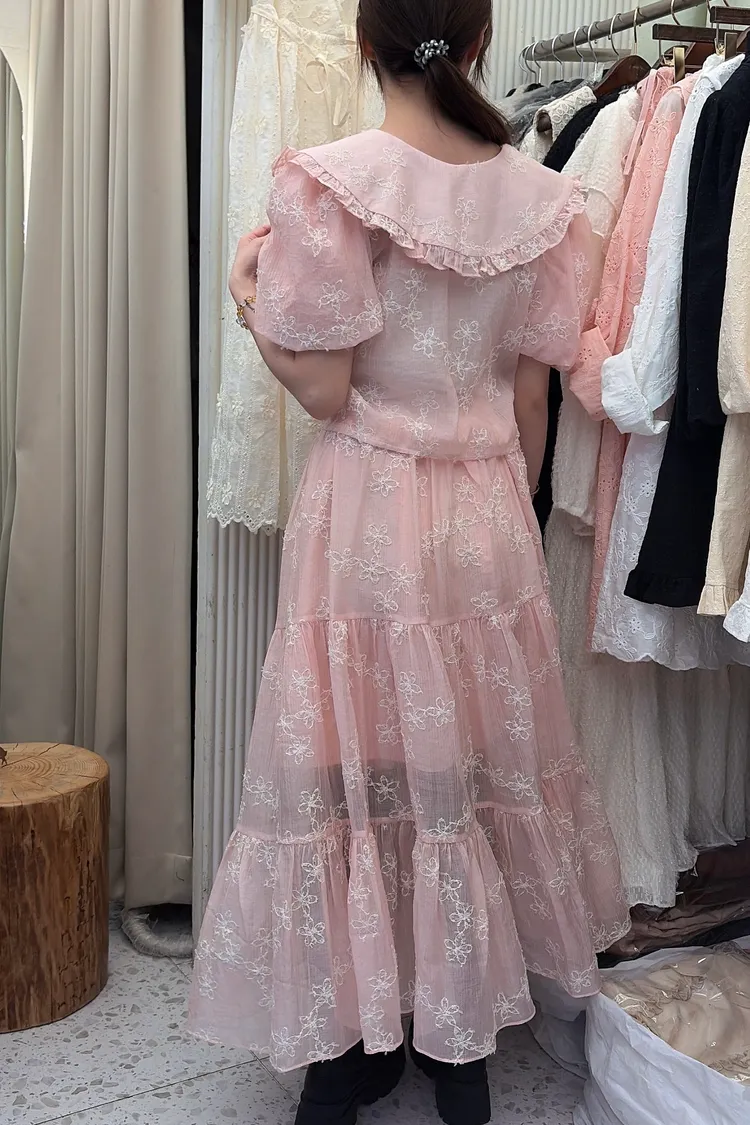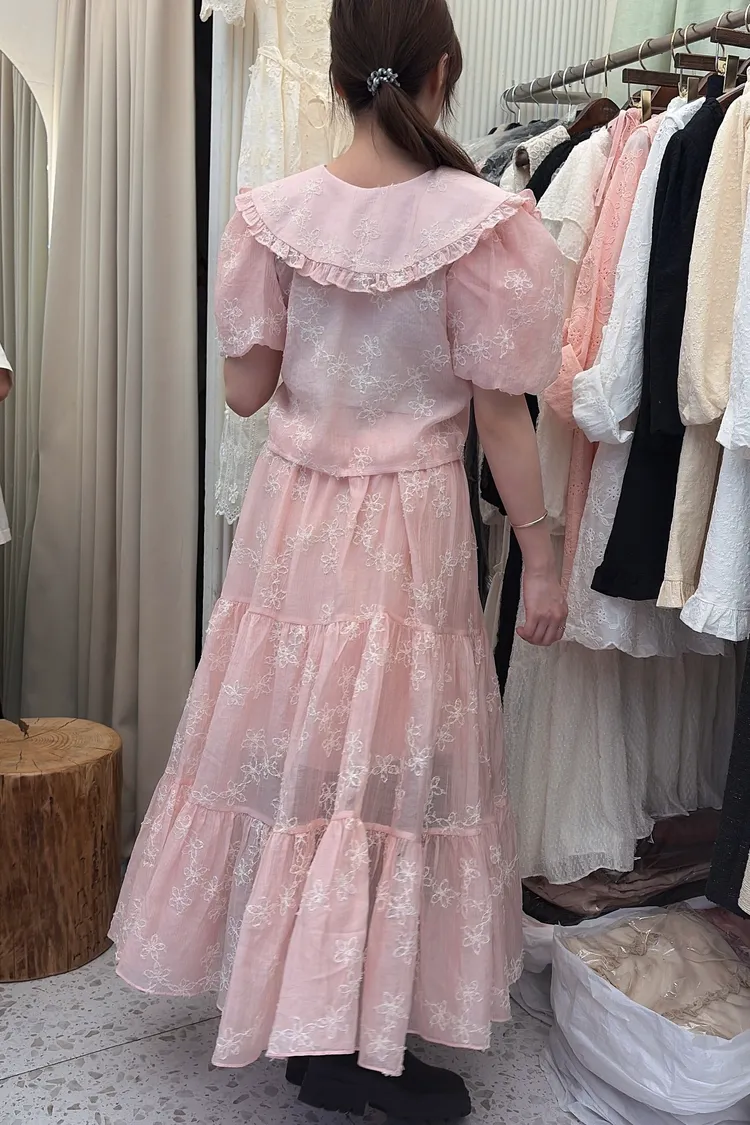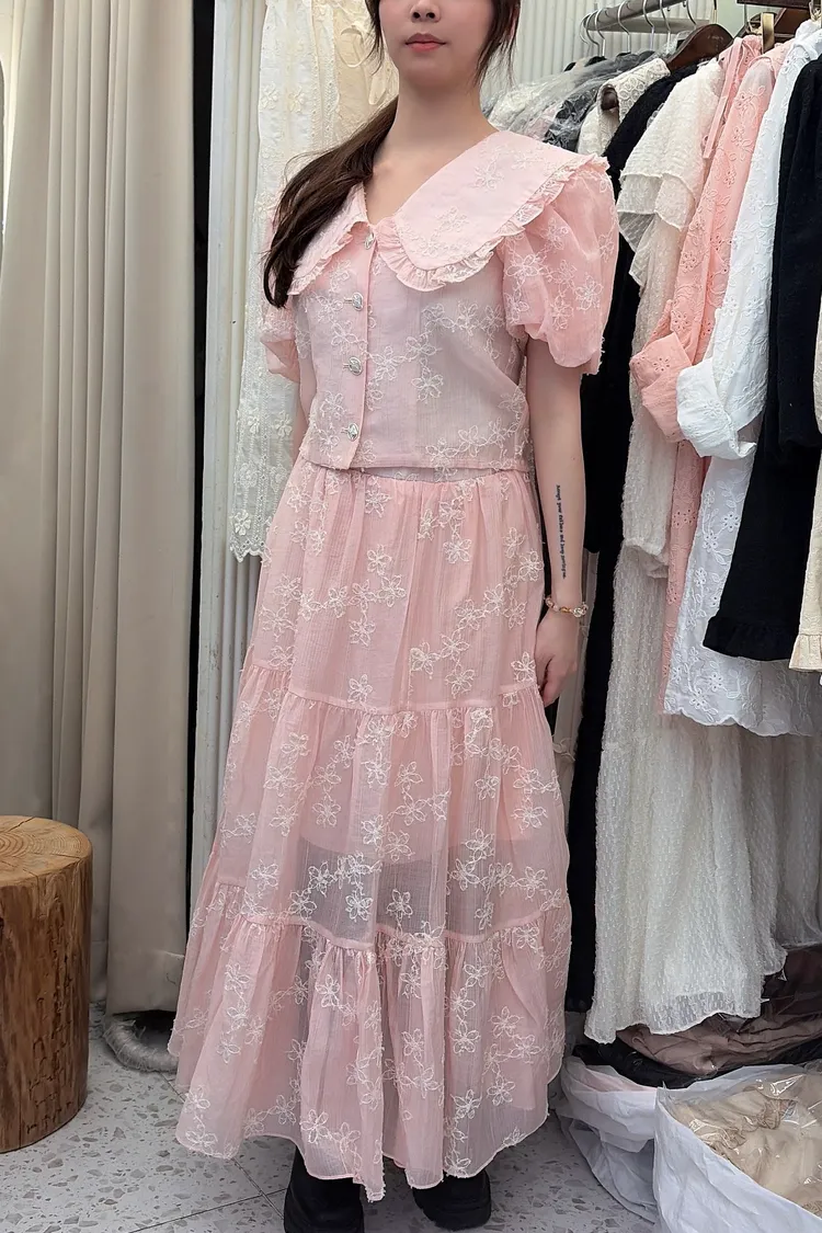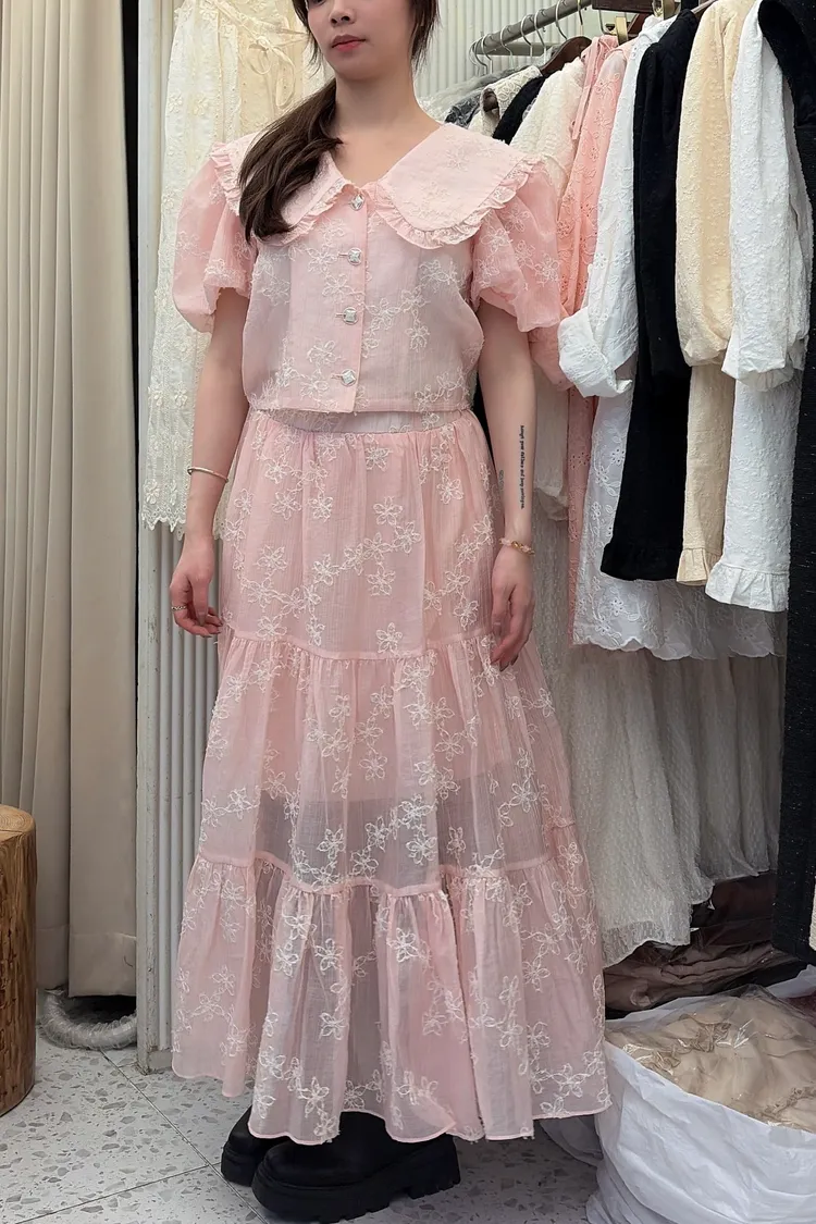 短版襯衫搭配長裙,下擺自然飄逸,穿起來超有層次感緹花網紗面料有細緻線絲花朵裝飾浪漫又柔美襯衫設計了翻領拼接抓折花邊,袖子採用公主袖剪裁搭配特殊造型釦,細節滿滿又精緻小寬鬆版型,S-L妞都可以穿長裙腰部整圈彈性鬆緊,有內襯