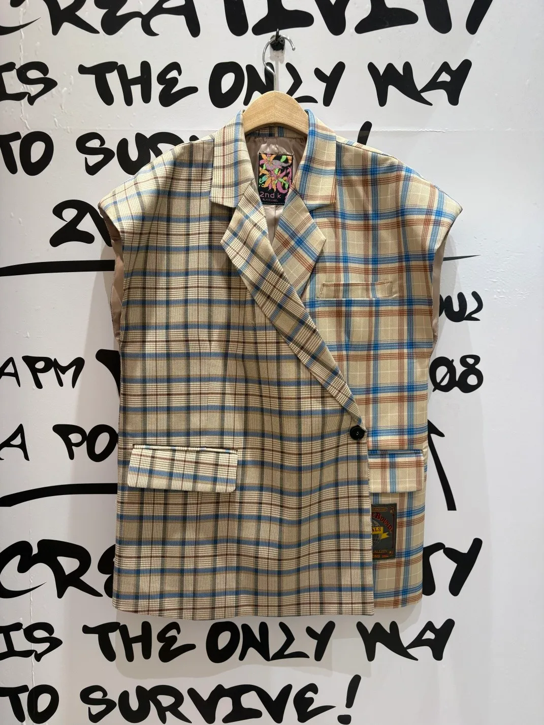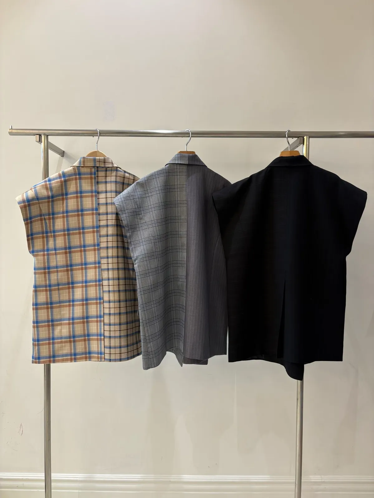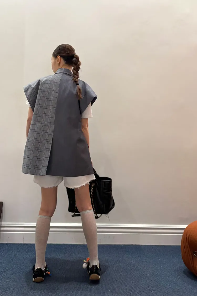 RLK06不對稱剪裁格紋西裝背心外套