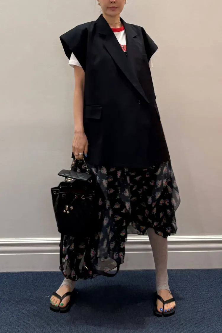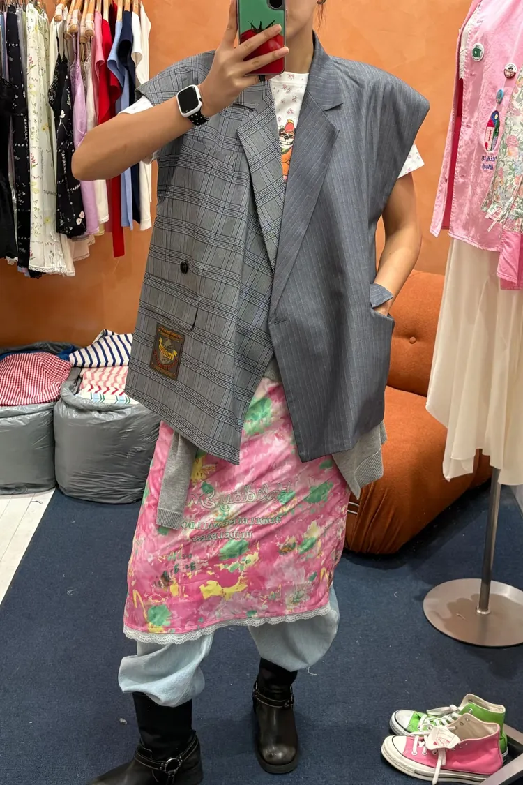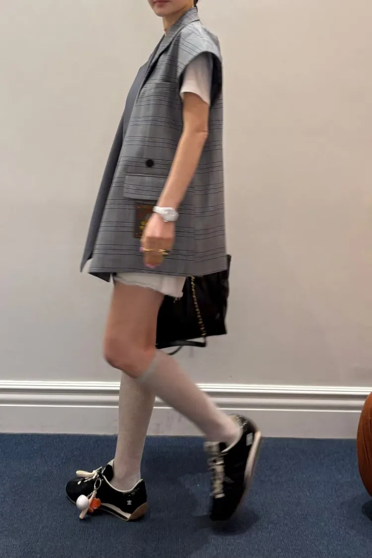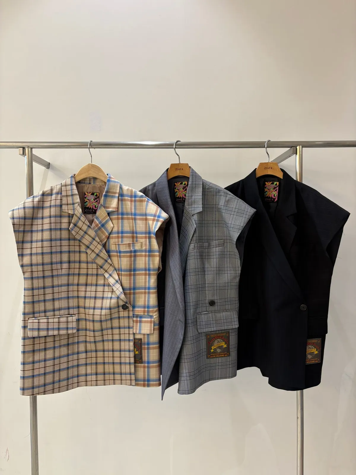 RLK06不對稱剪裁格紋西裝背心外套