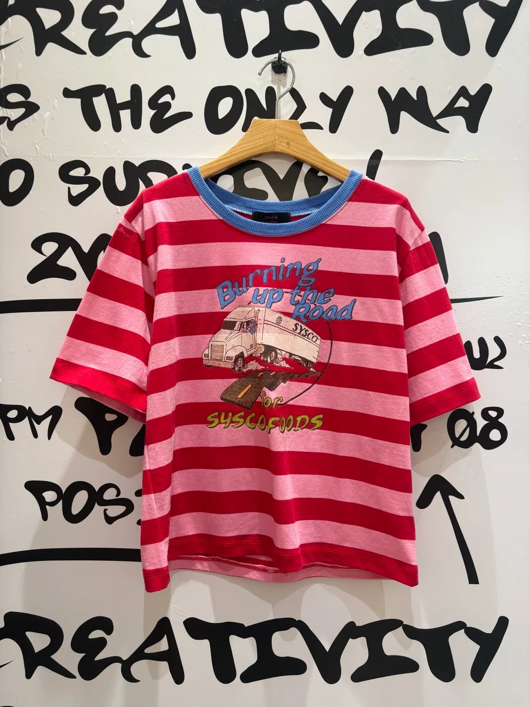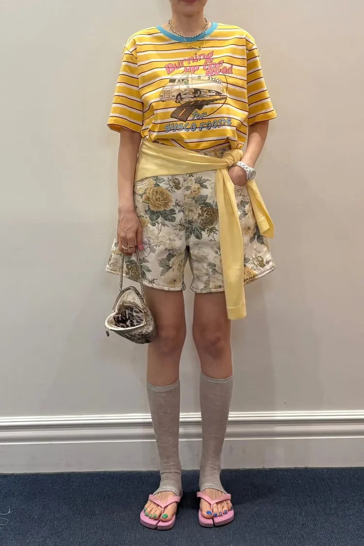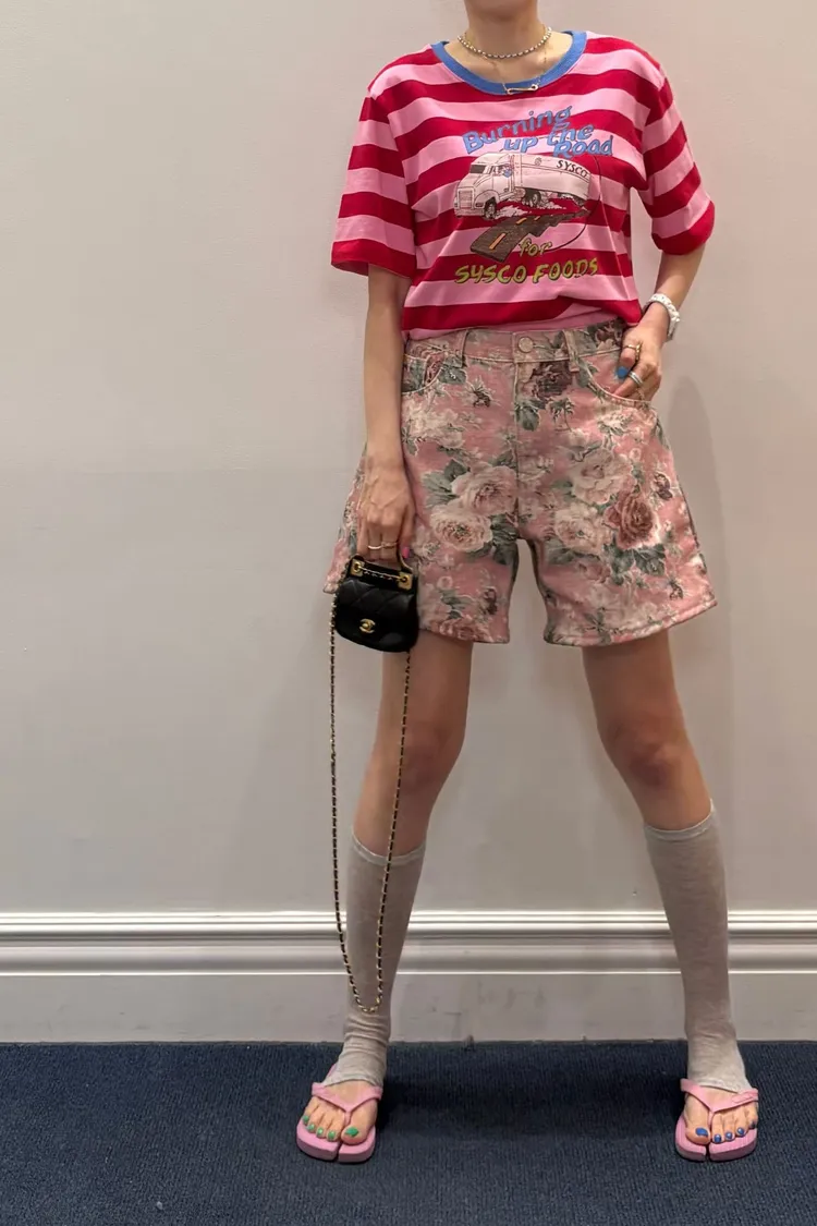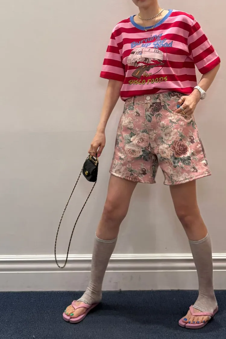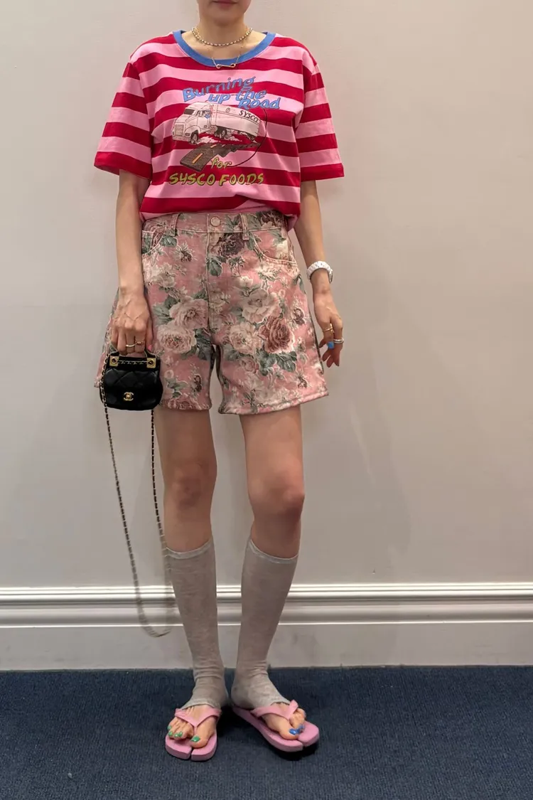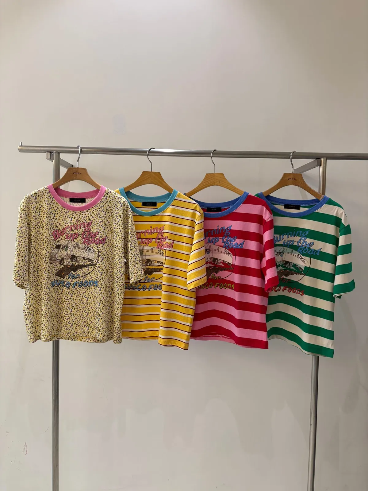 舒服手感棉料材質,落肩小寬鬆版型,穿起來自然有鬆弛感 S-L妞都可以穿 領口撞色設計,讓整體更有層次感 衣身搭配碎花或彩色撞色條紋底,再加上漫畫風格的公車圖案 整體視覺超活潑,很有日系插畫感,走在路上很吸睛 搭配英文字元素,讓整件不只是可愛,還多了一點態度感