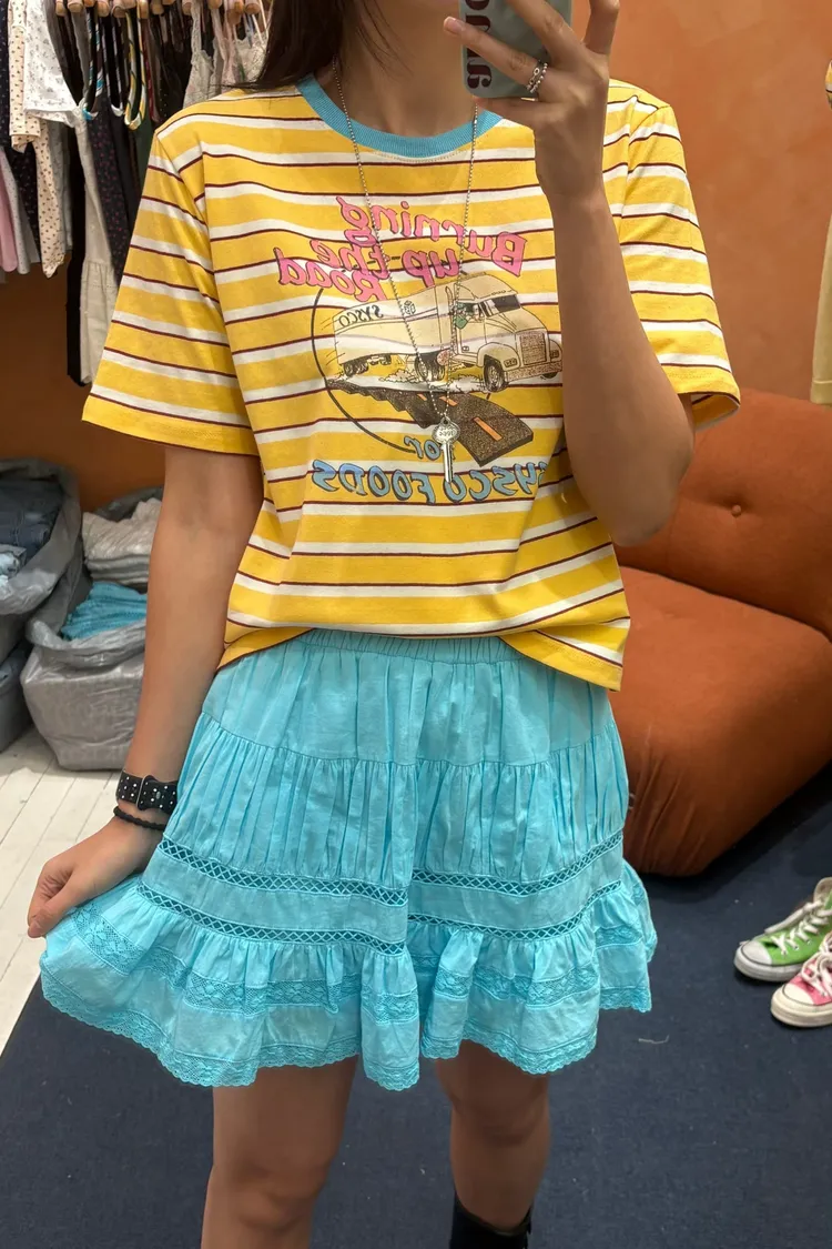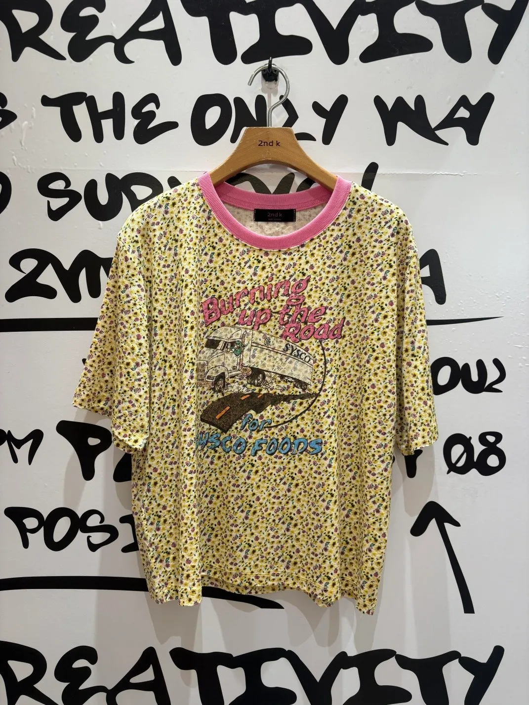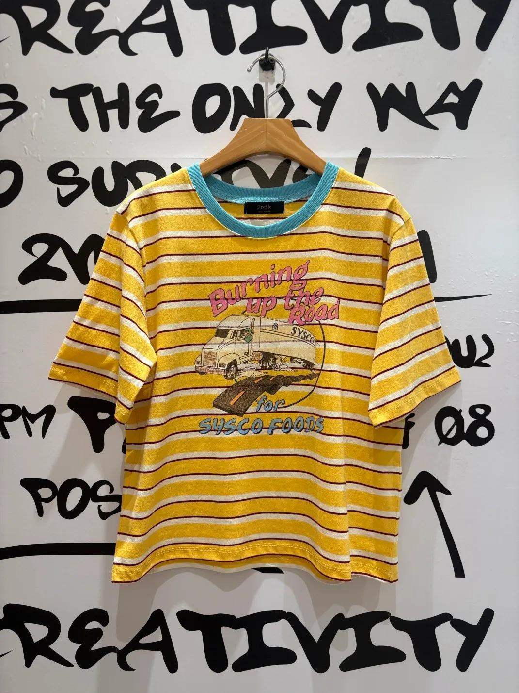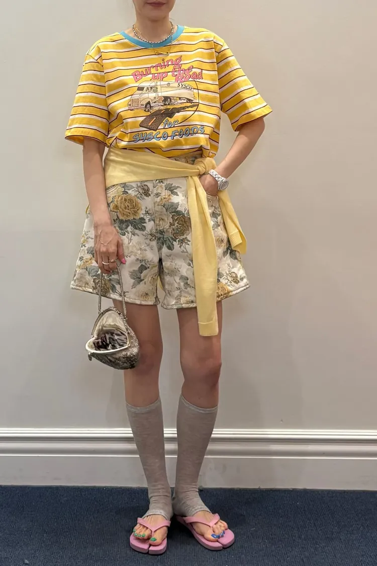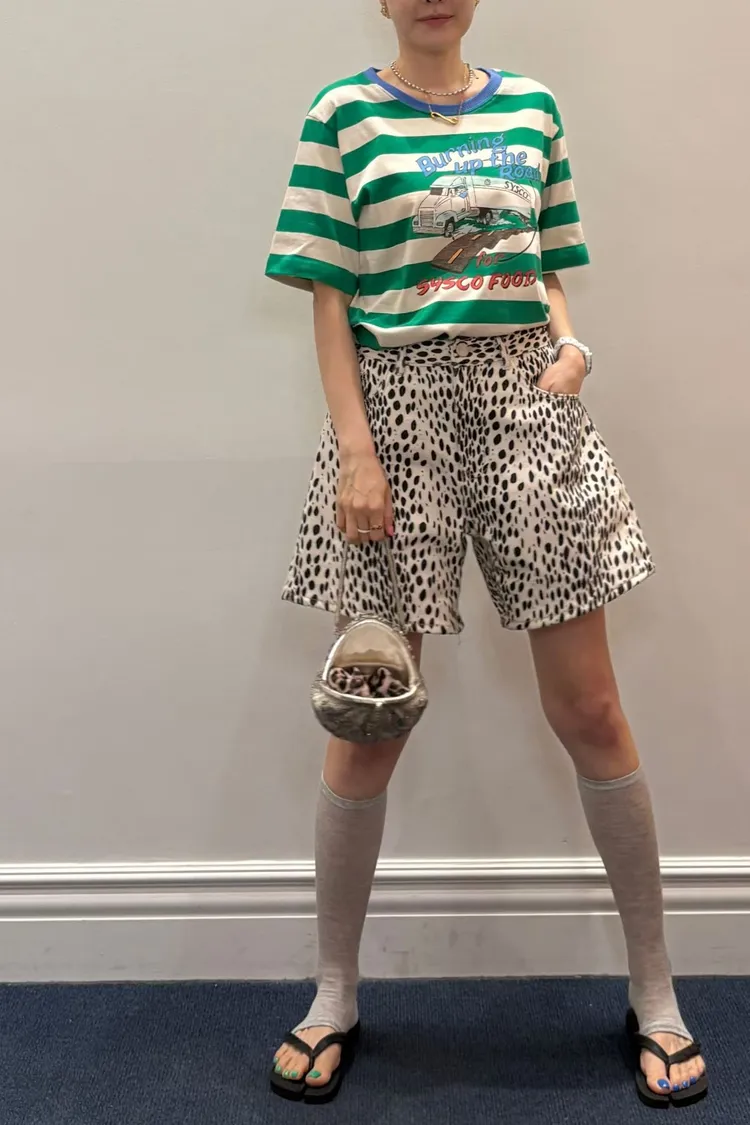 舒服手感棉料材質,落肩小寬鬆版型,穿起來自然有鬆弛感 S-L妞都可以穿 領口撞色設計,讓整體更有層次感 衣身搭配碎花或彩色撞色條紋底,再加上漫畫風格的公車圖案 整體視覺超活潑,很有日系插畫感,走在路上很吸睛 搭配英文字元素,讓整件不只是可愛,還多了一點態度感
