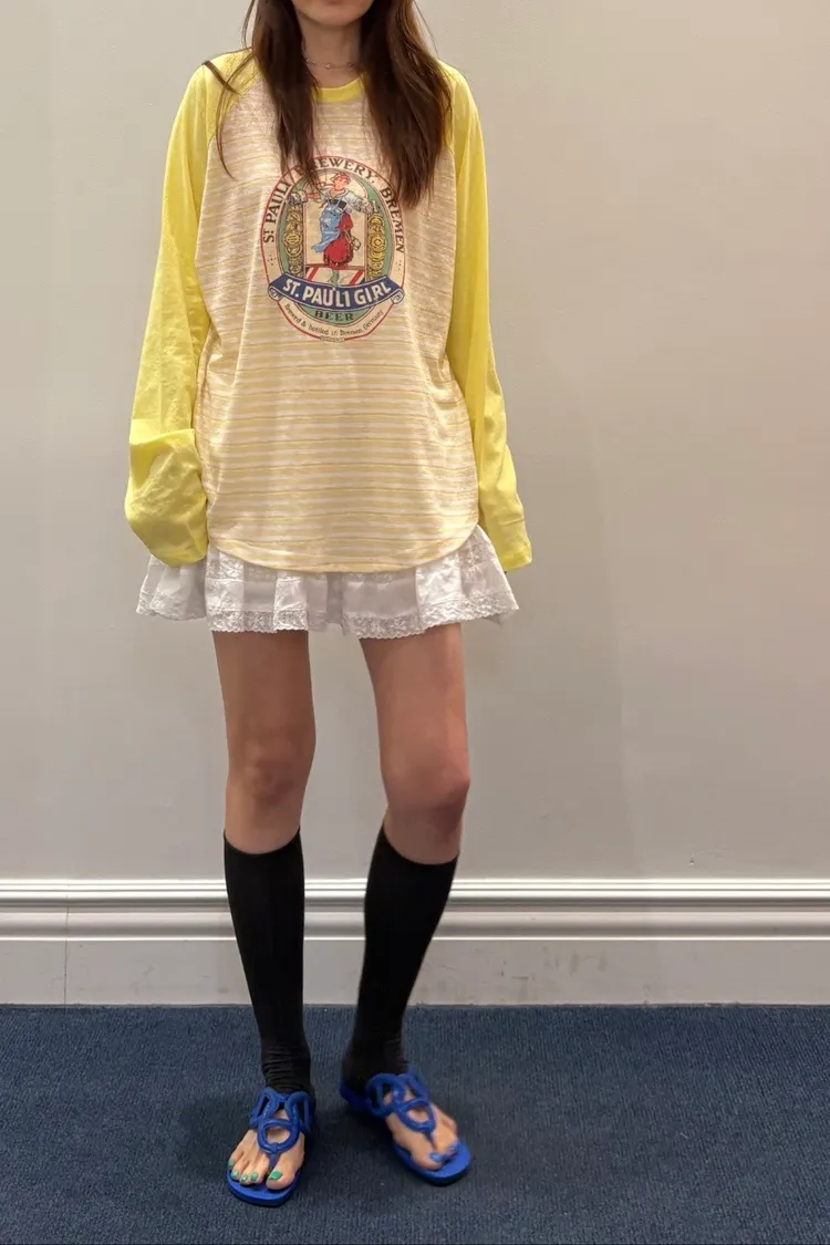 非常輕薄透氣的竹節棉和麻料、人造絲混紡 歐膩專為夏天設計的長袖款,材質乾爽不黏身 很適合防曬、冷氣房或濕熱的梅雨季 美式復古人物印花搭配領口撞色與手袖拼接細節 增添復古趣味與層次感 寬鬆版型,S-L妞都可以穿 相同版型設計,RLK23面料略微不同可一併參考