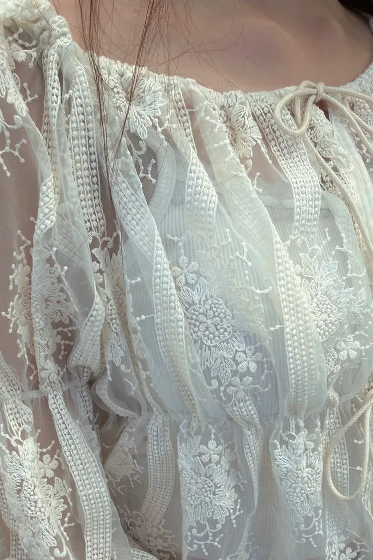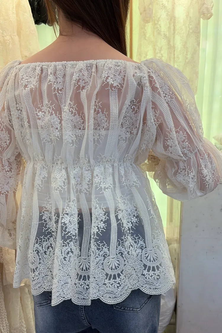 輕飄飄網紗面料自然飄逸,搭配細緻刺繡點綴讓整體散發優雅又浪漫的氣息寬鬆版型設計,S-L妞都可以穿大圓領結合彈性鬆緊與抽繩綁帶細節,可調整領口鬆緊也能變成一字領穿法,展現不同風格袖口以花瓣邊彈性鬆緊設計,搭配澎澎公主感的法式手袖讓整體輪廓更柔美立體,帶出甜美又優雅的氛圍胸下彈性鬆緊與抽繩綁帶設計,增添層次感也能微微收出腰線比例都能打造浪漫又帶點法式氣質的日常穿搭是一件充滿細節與氛圍感的單品