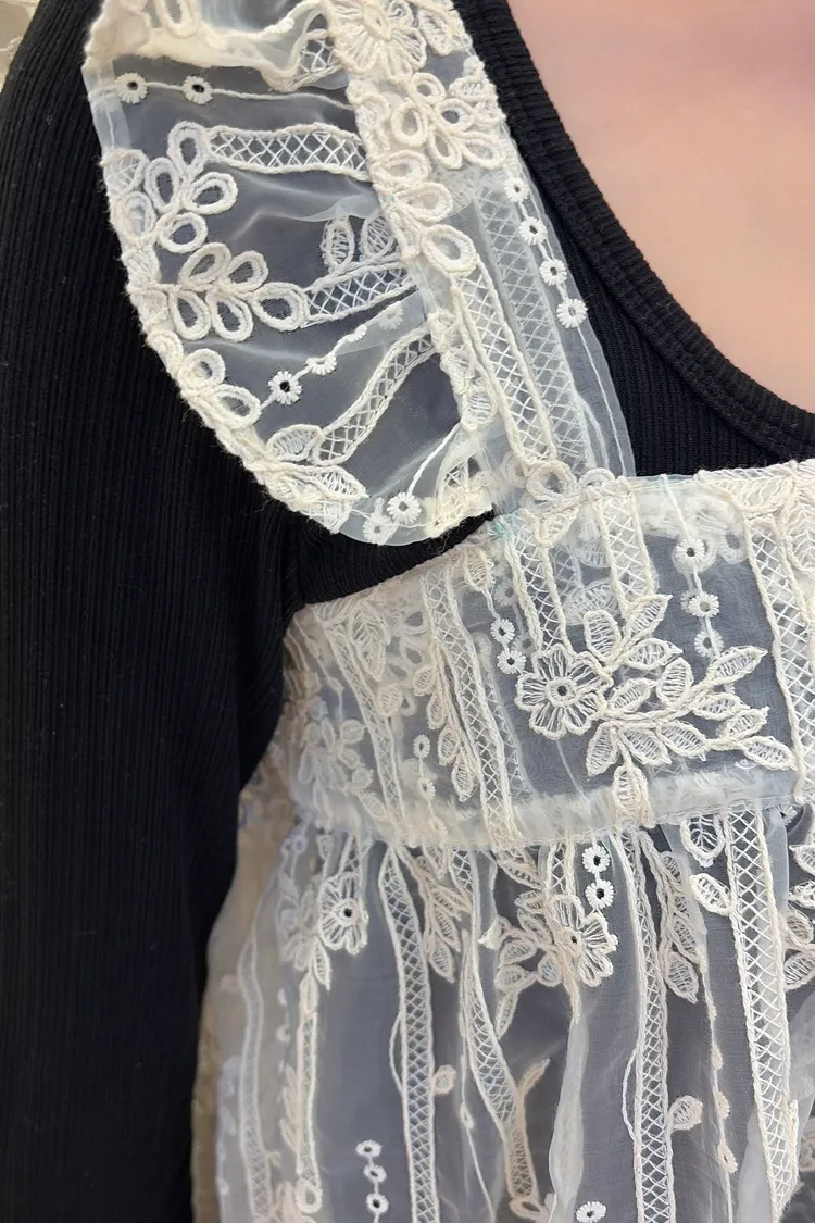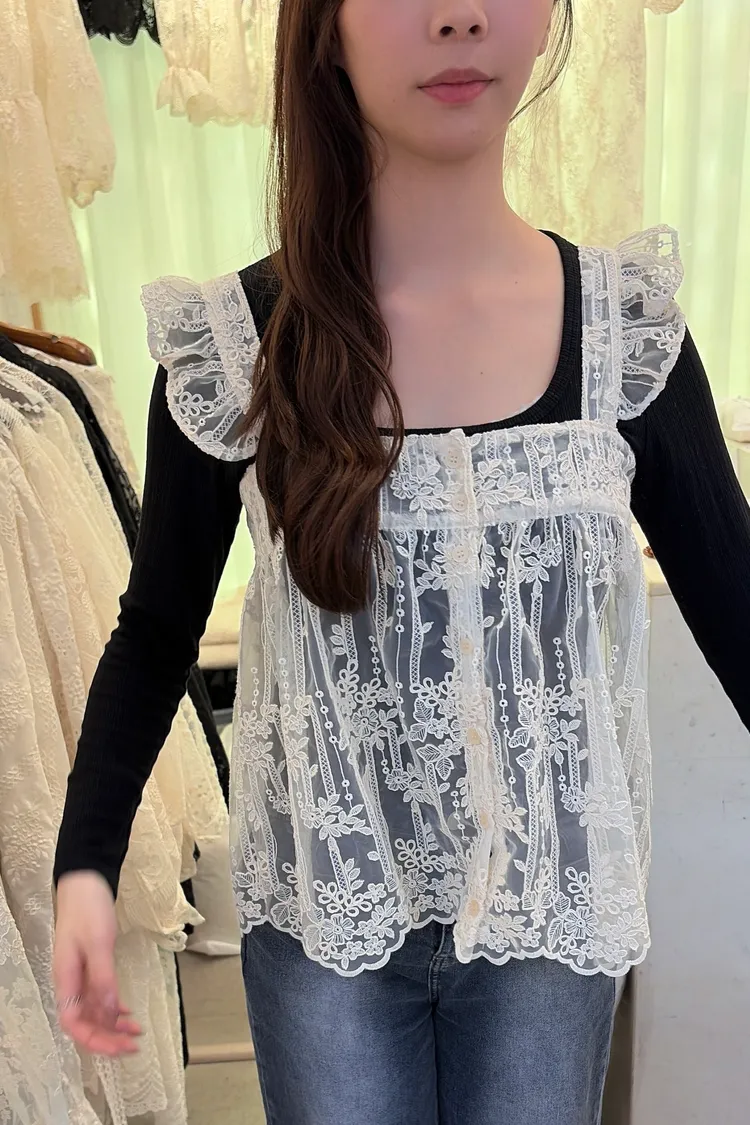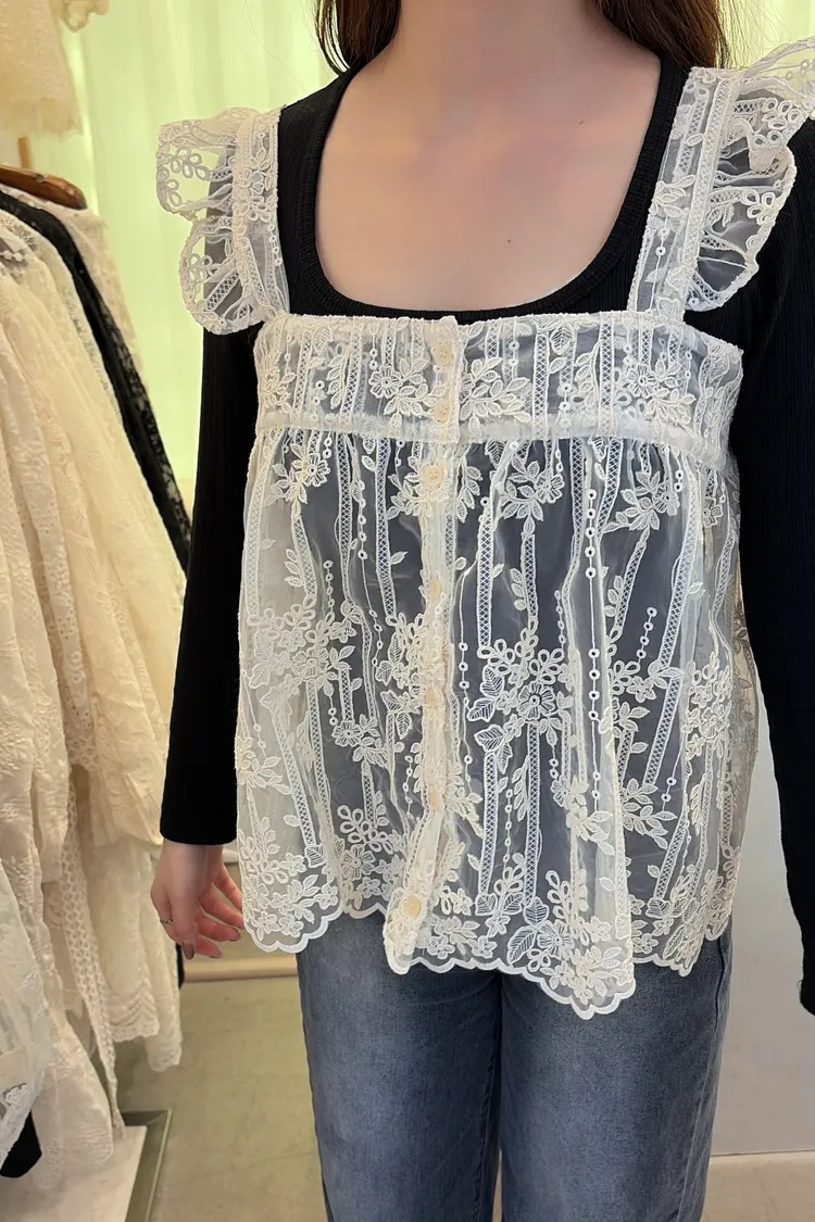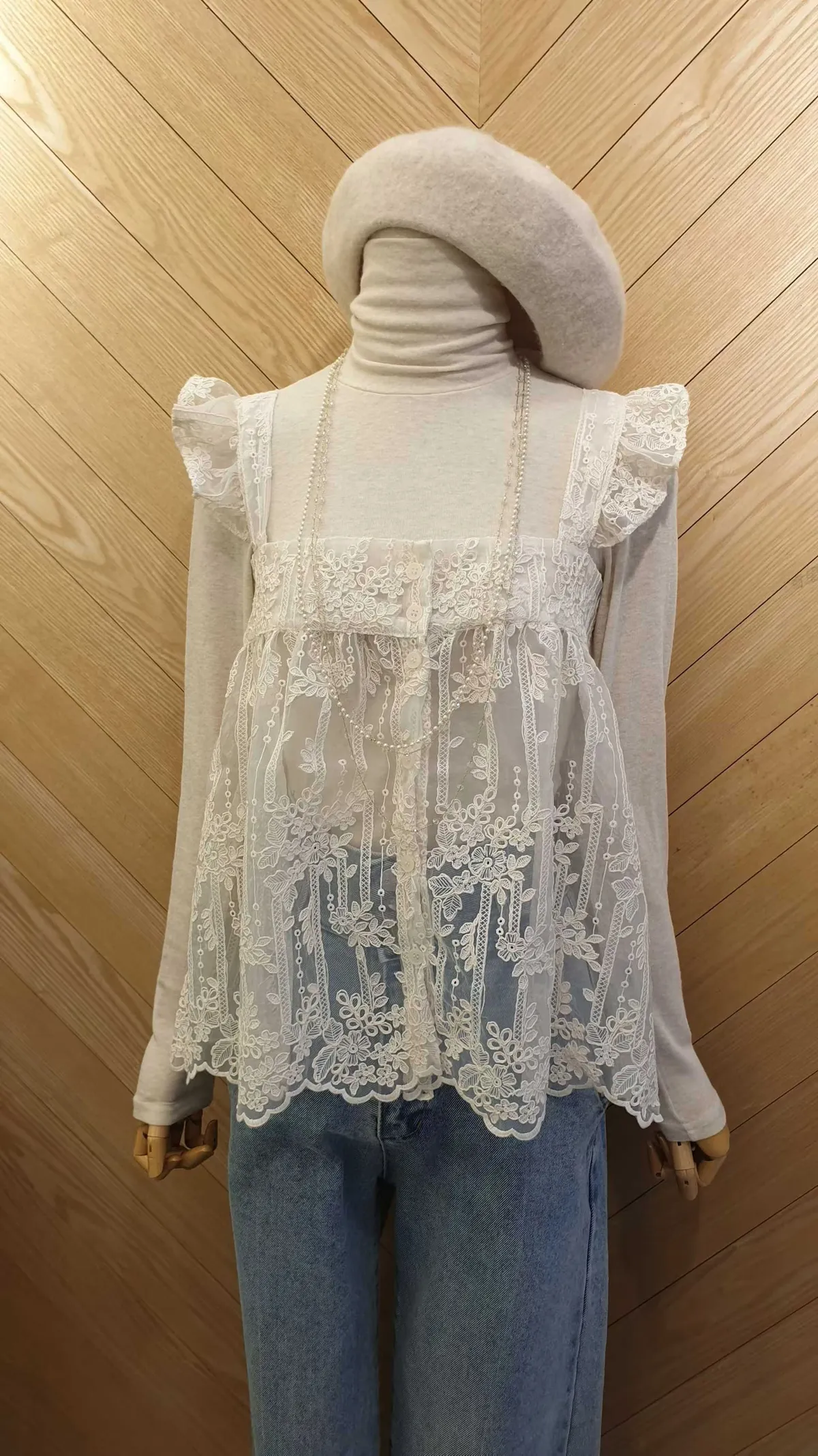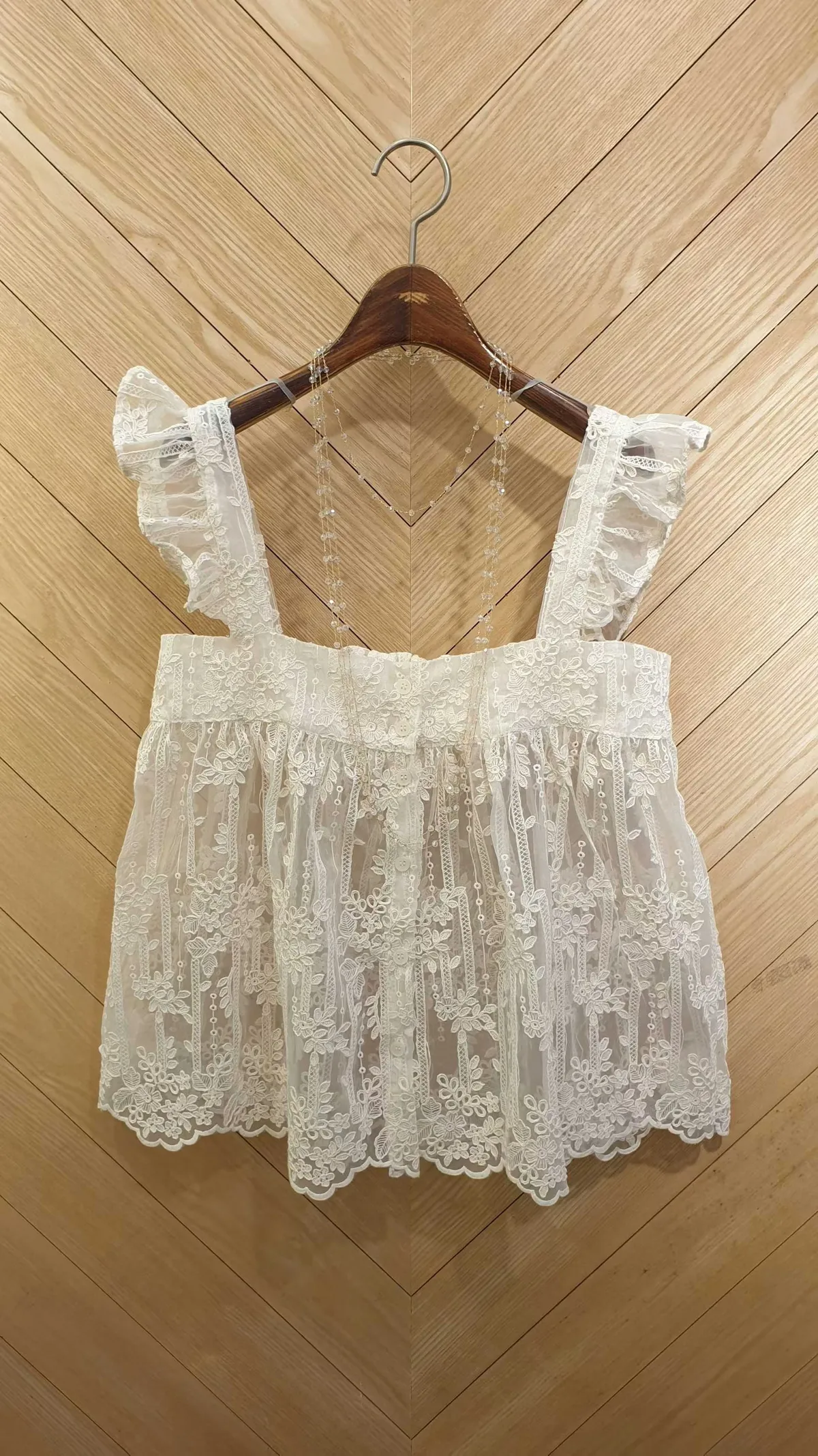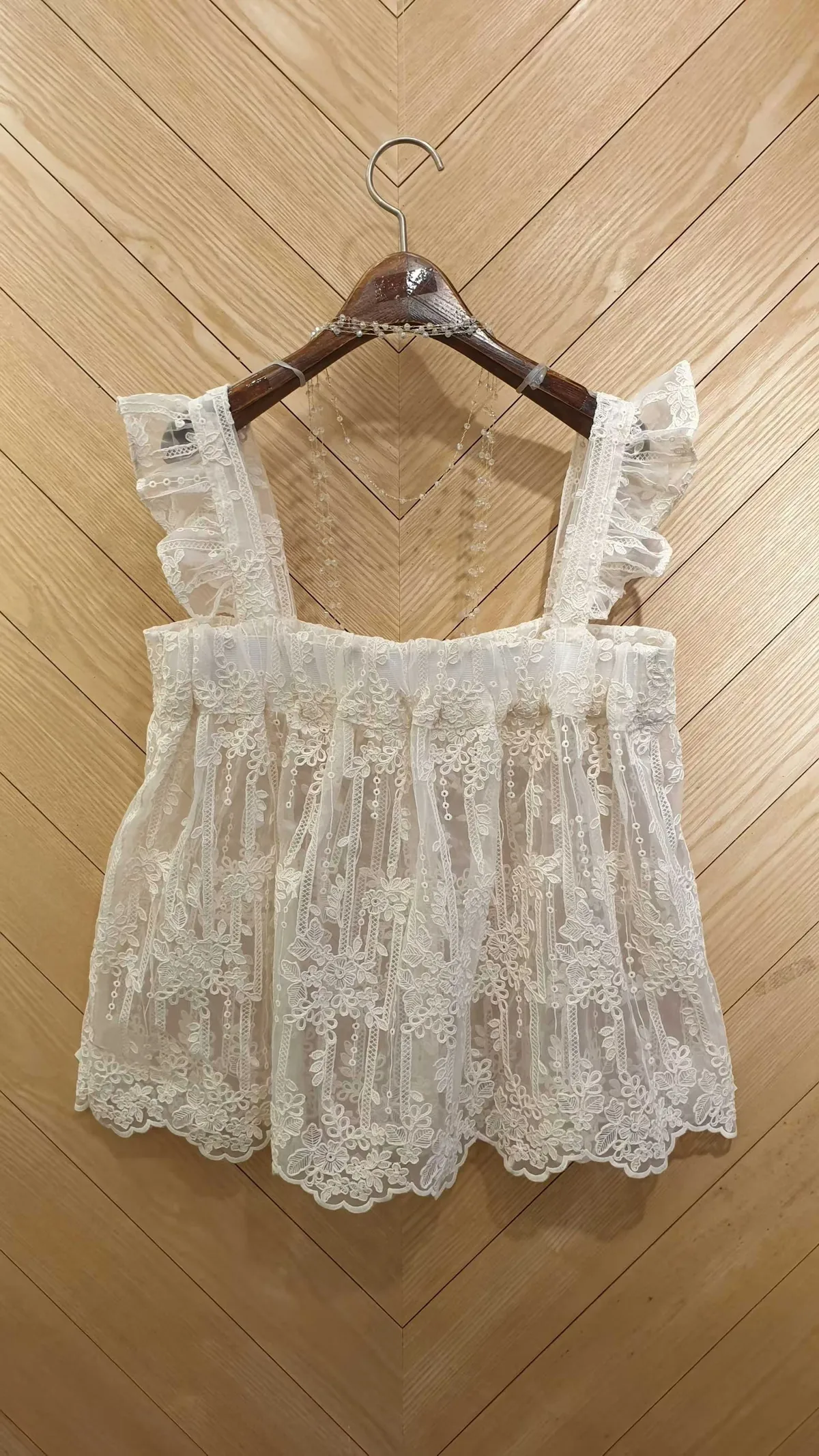 輕飄飄的網紗面料,點綴精緻刺繡細節細膩紋理為整體增添優雅質感寬鬆版型,背面彈性鬆緊,S-L妞都可以穿寬肩帶拼接抓折與飛飛花瓣邊設計,讓肩線多了一份立體與柔美感背面加入排扣設計,同時具備正反兩穿巧思作為背心上衣單穿清爽俐落,也很適合用來做層次穿搭
