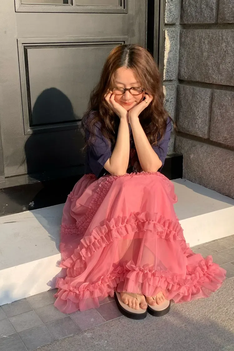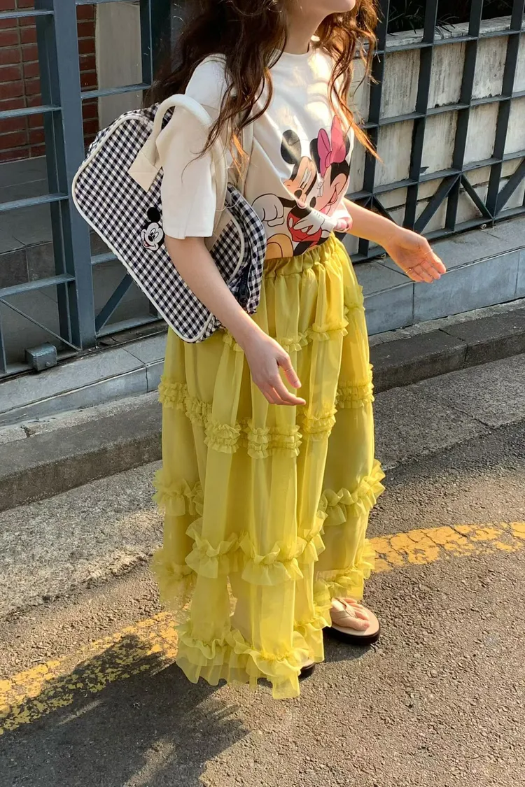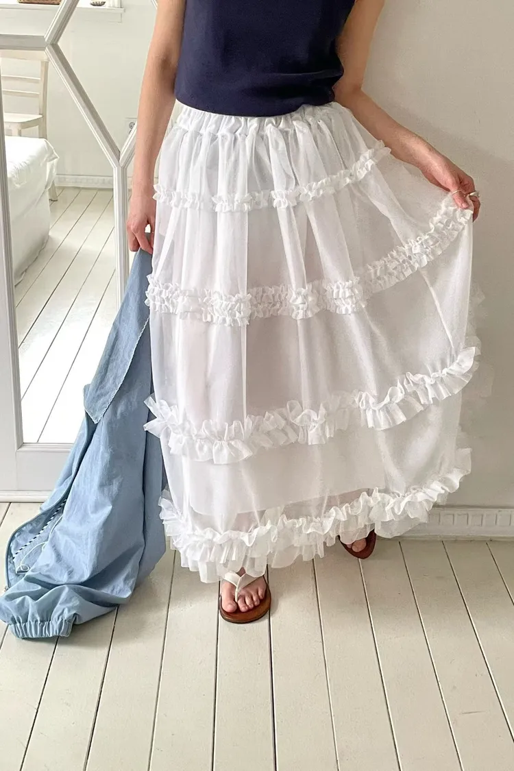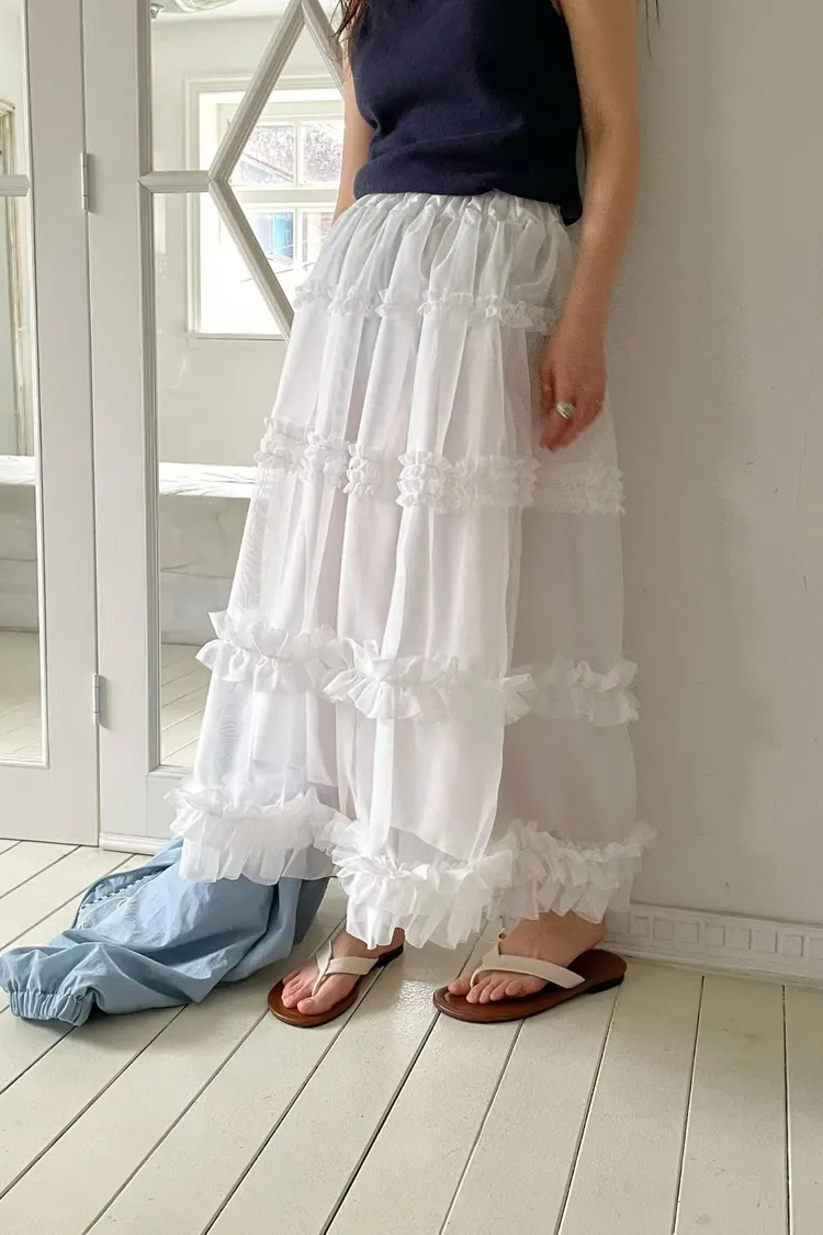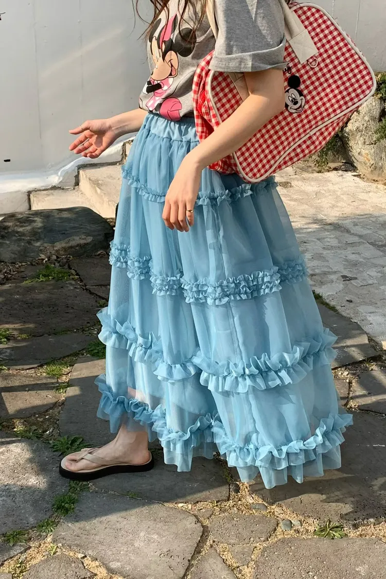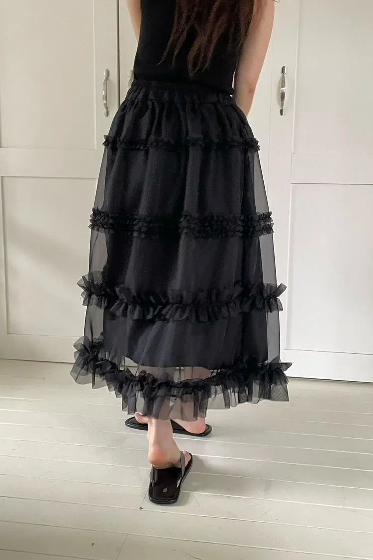 RLV19漸變抓摺滾邊網紗半身裙