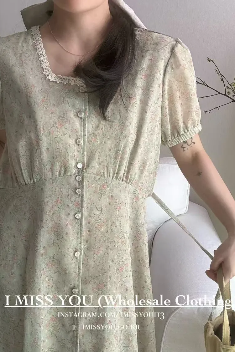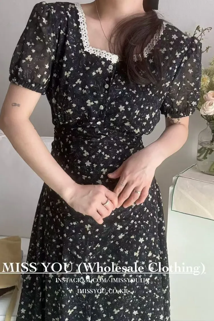 一穿就是滿滿春日浪漫✨ 碎花雪紡面料,清新又飄逸 顯鎖骨的方領,滾邊蕾絲拼接更顯精緻 排釦設計可全開當罩衫,變化度高又實穿 胸下高腰版型,S-L妞都可以穿(60kg以內OK) 腰部兩側有綁帶可微調腰身線條,有內襯