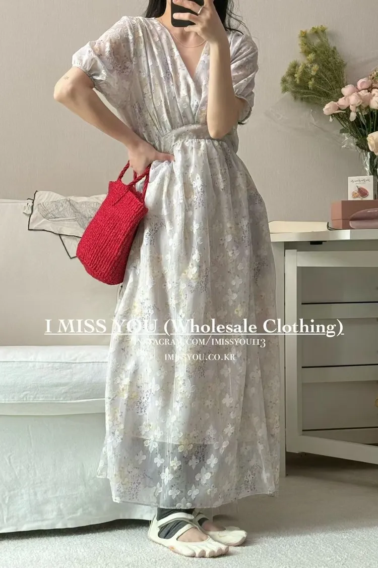 V領設計,胸下高腰傘狀裙襬自然垂落,行走間呈現優雅曲線