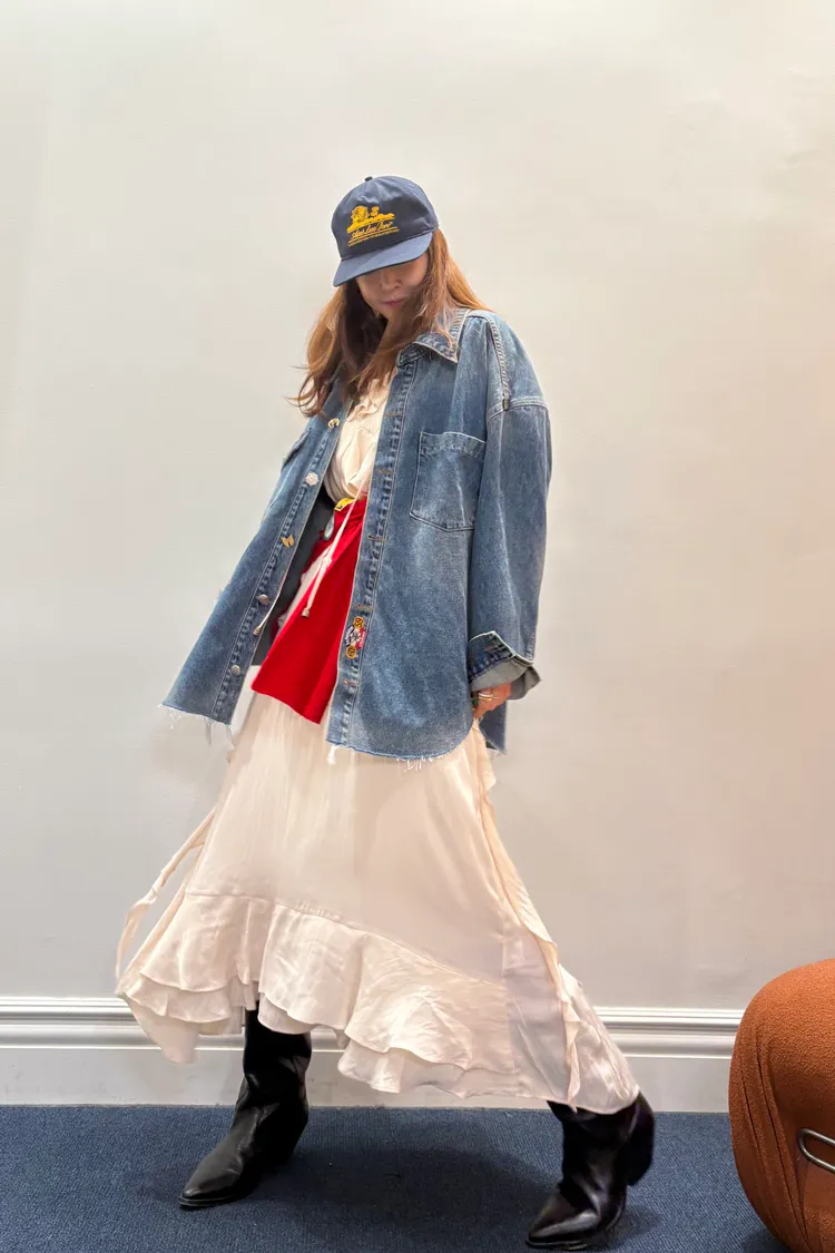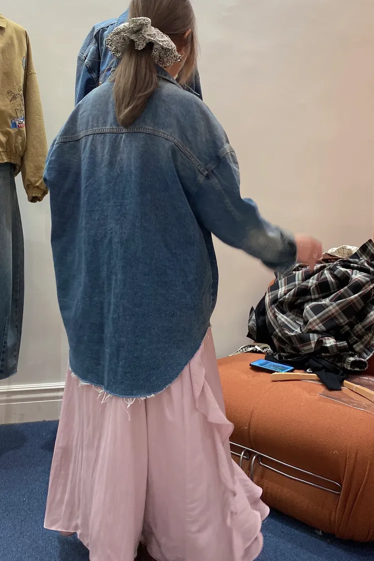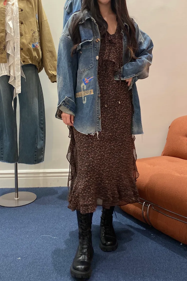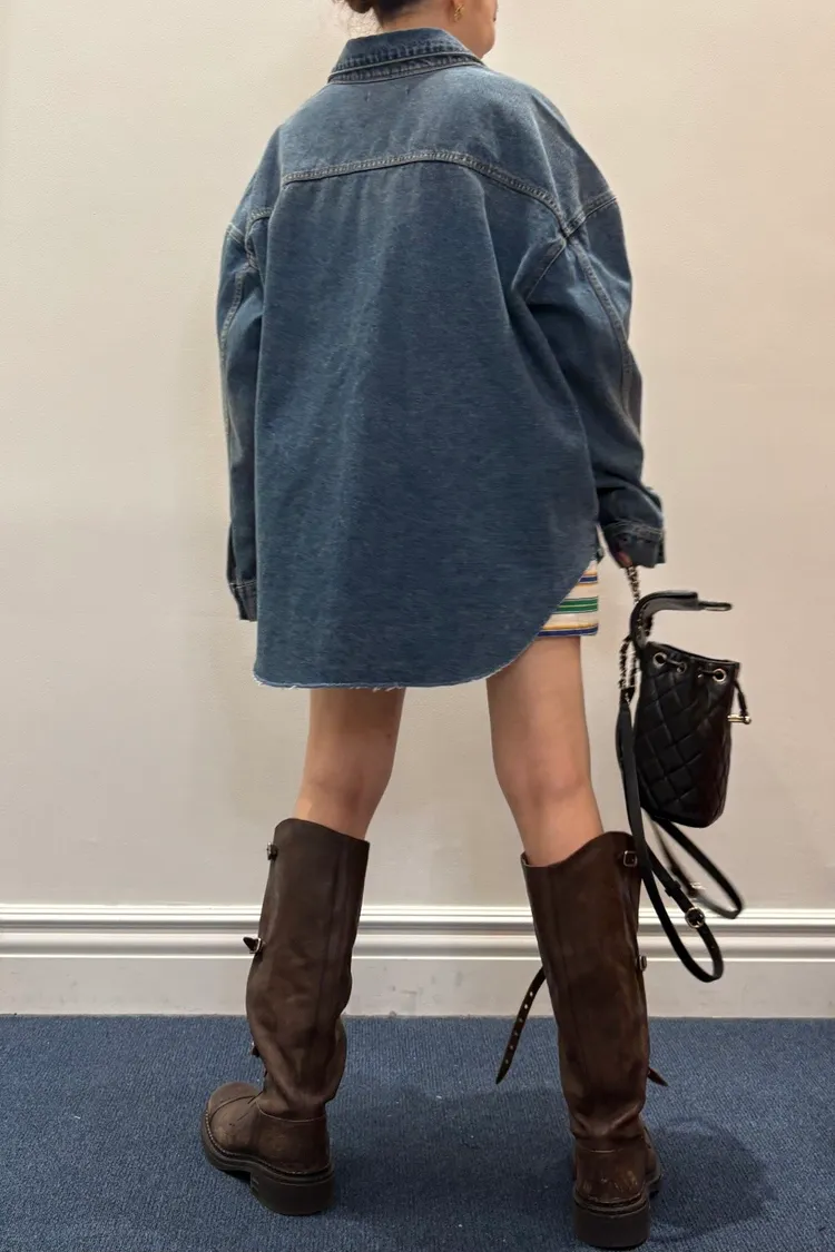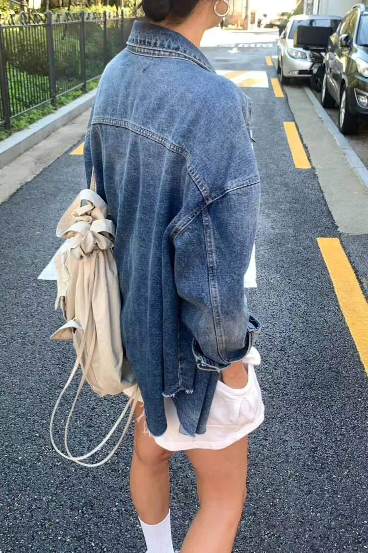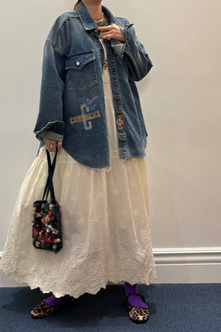 水洗牛仔面料做出滿滿復古感,落肩寬鬆蓋臀版型修飾又自在,S-XL妞都可以穿 排釦的每顆扣子都是不同的造型扣 有可愛的刺繡、翻領也有做金屬小細節 英文標語仿舊設計加上衣擺不收邊的小心機 當襯衫單穿OK,直接當外套也OK都超有型,隨便一搭就很出片 是能夠穿很久的百搭單品