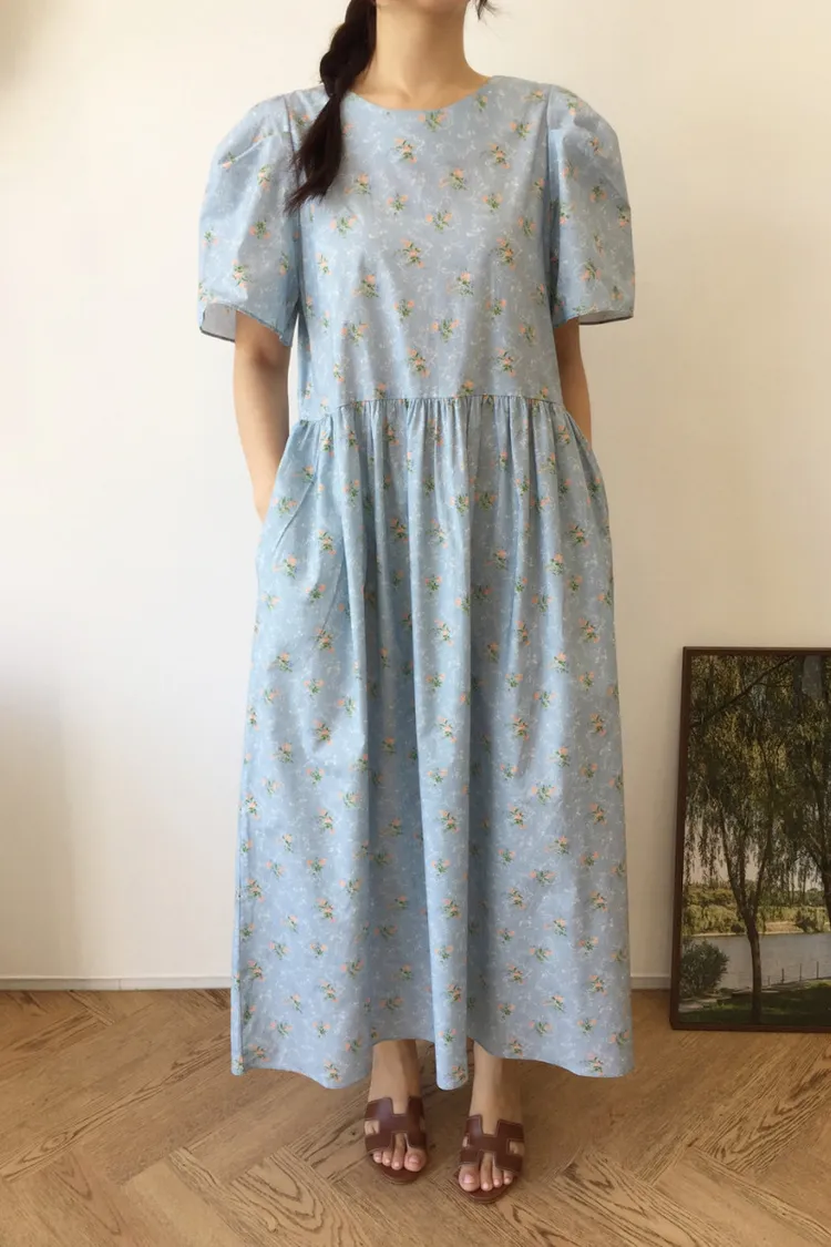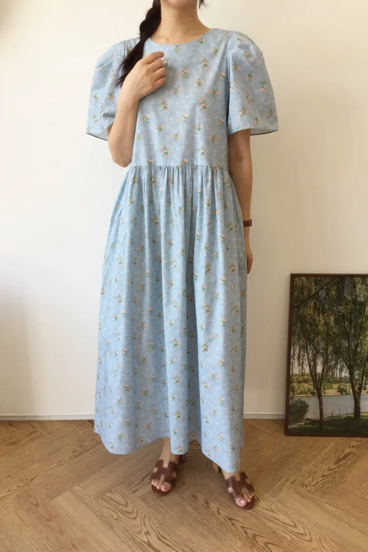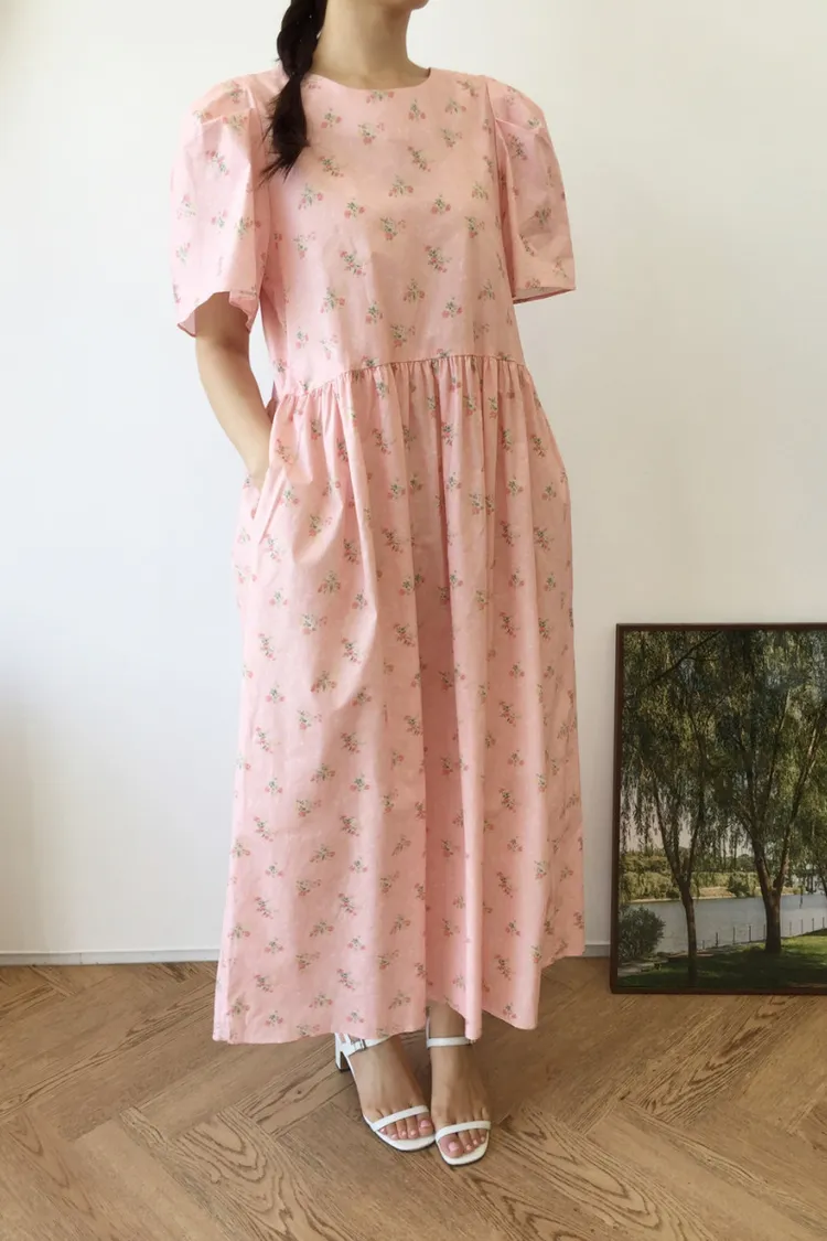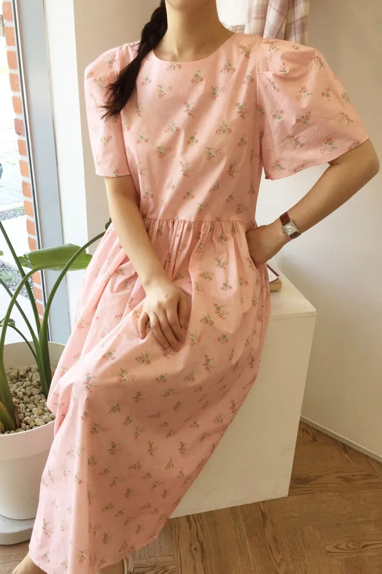 棉料材質、寬鬆傘狀裙襬,穿起來自在又飄逸,S-L妞都可以穿 背面有拉鍊好穿脫 最迷人的是那溫柔甜美的花束印花配色,恬靜中帶點小清新,充滿濃濃日系文青感 像是某部日劇裡會出現的溫柔系女主角,輕輕鬆鬆就能穿出氣質♡